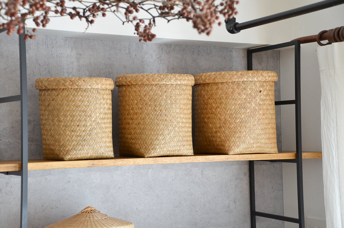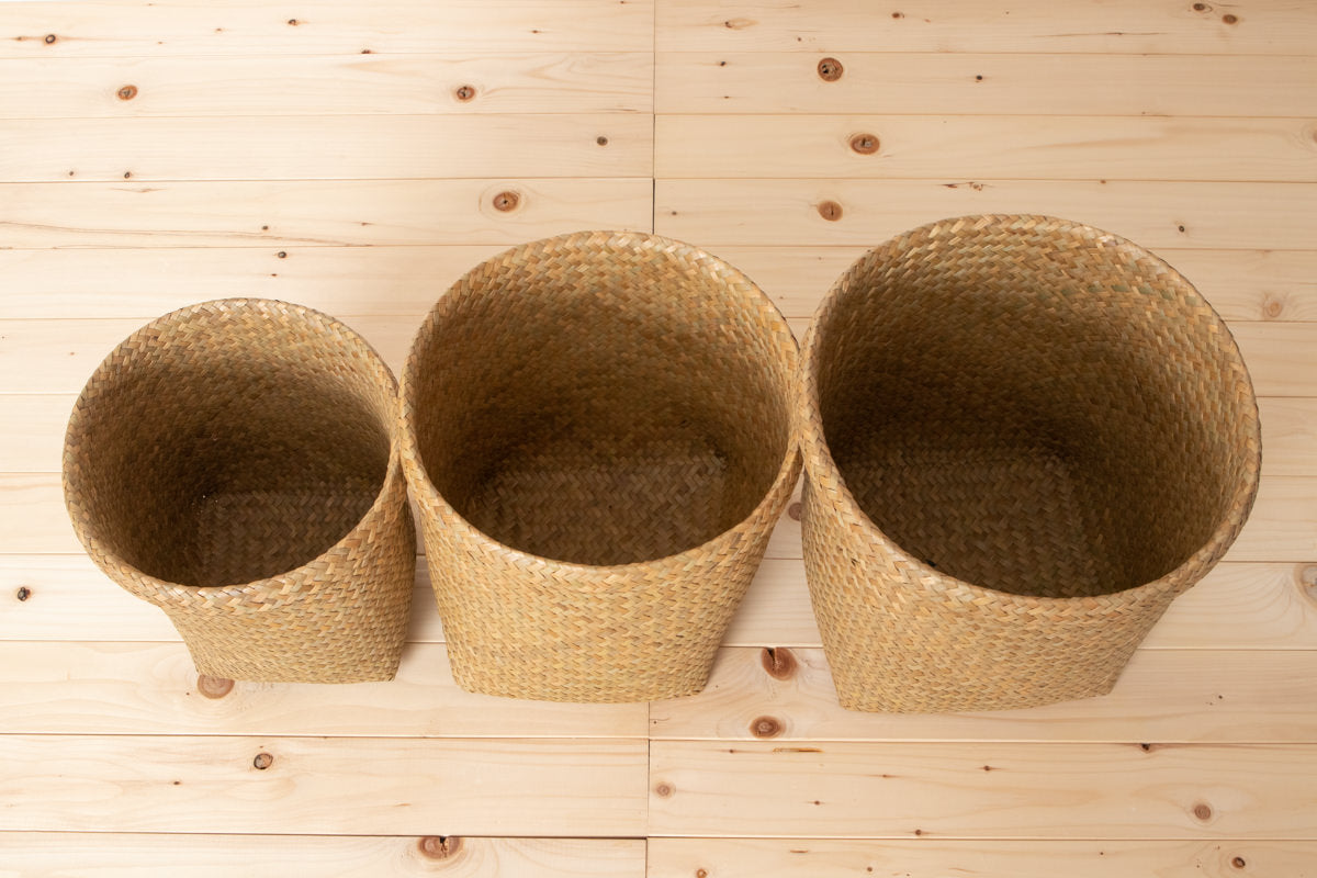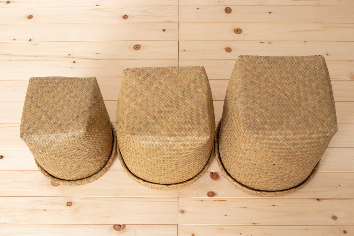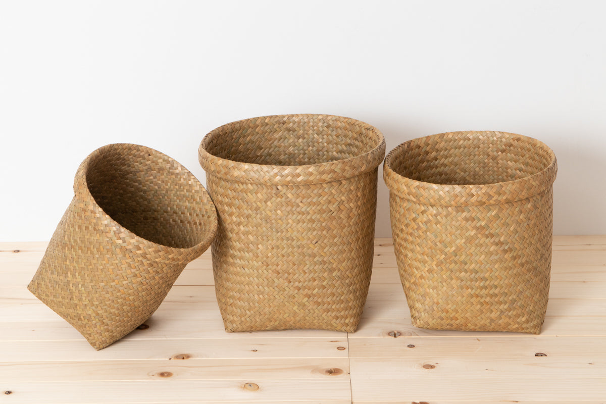 こちらのページでは、「カチュー」製、背の高い筒形のかご、「S、M、L」3サイズをご紹介します。