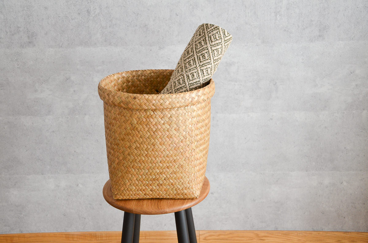 ラグやマットを使わないときに筒状に丸めてこちらのかごに。