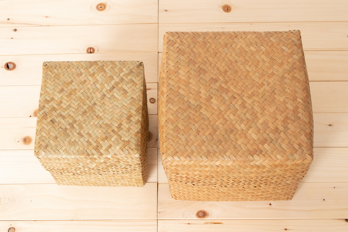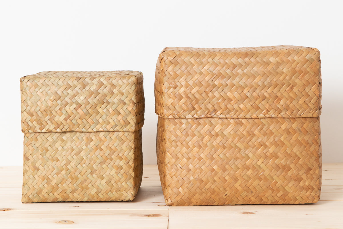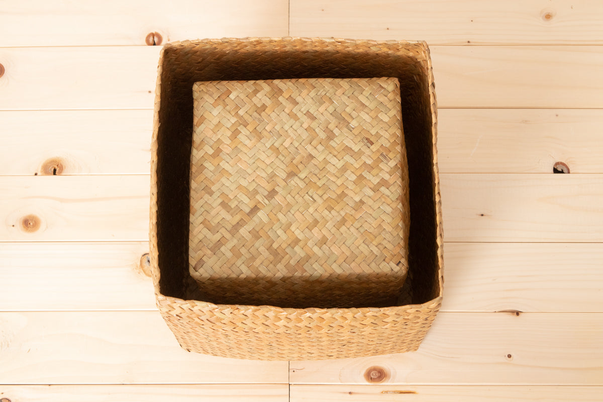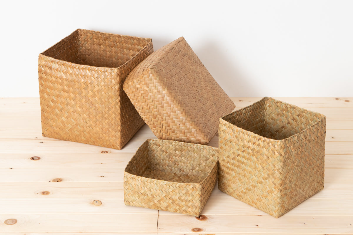 スリムな角型のかごは、並べて収納するのも良さそうです。