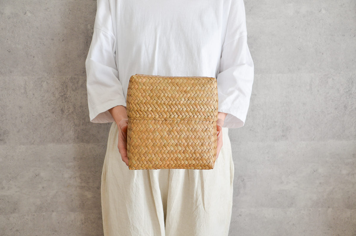 若い世代の編み手が少ないながらも、今、改めてタイ国内でも、こうした自然素材製品の良さが見直され、若い人たちがかごを手に取るようになってきているとのこと。