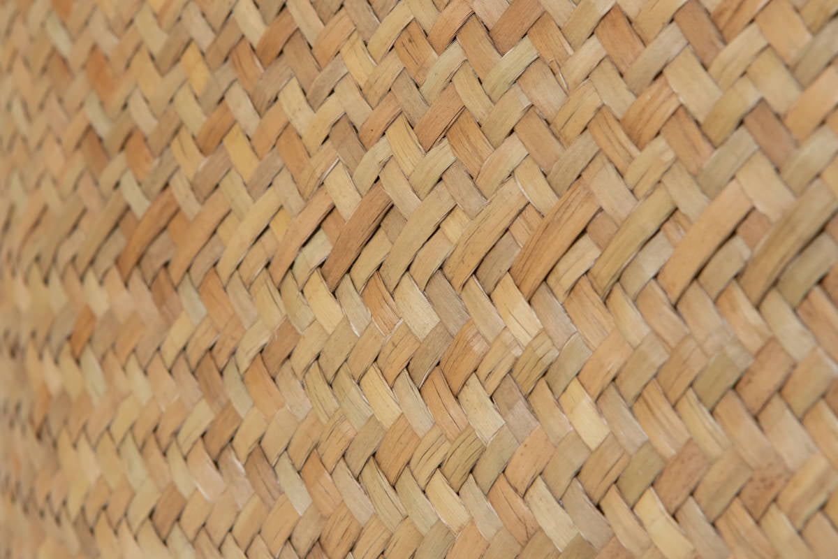 かご側面の編み目をよく見ると、上下と真ん中で異なり、真ん中部分は編みひごの交差する順を変えて編み目に変化をつけています。