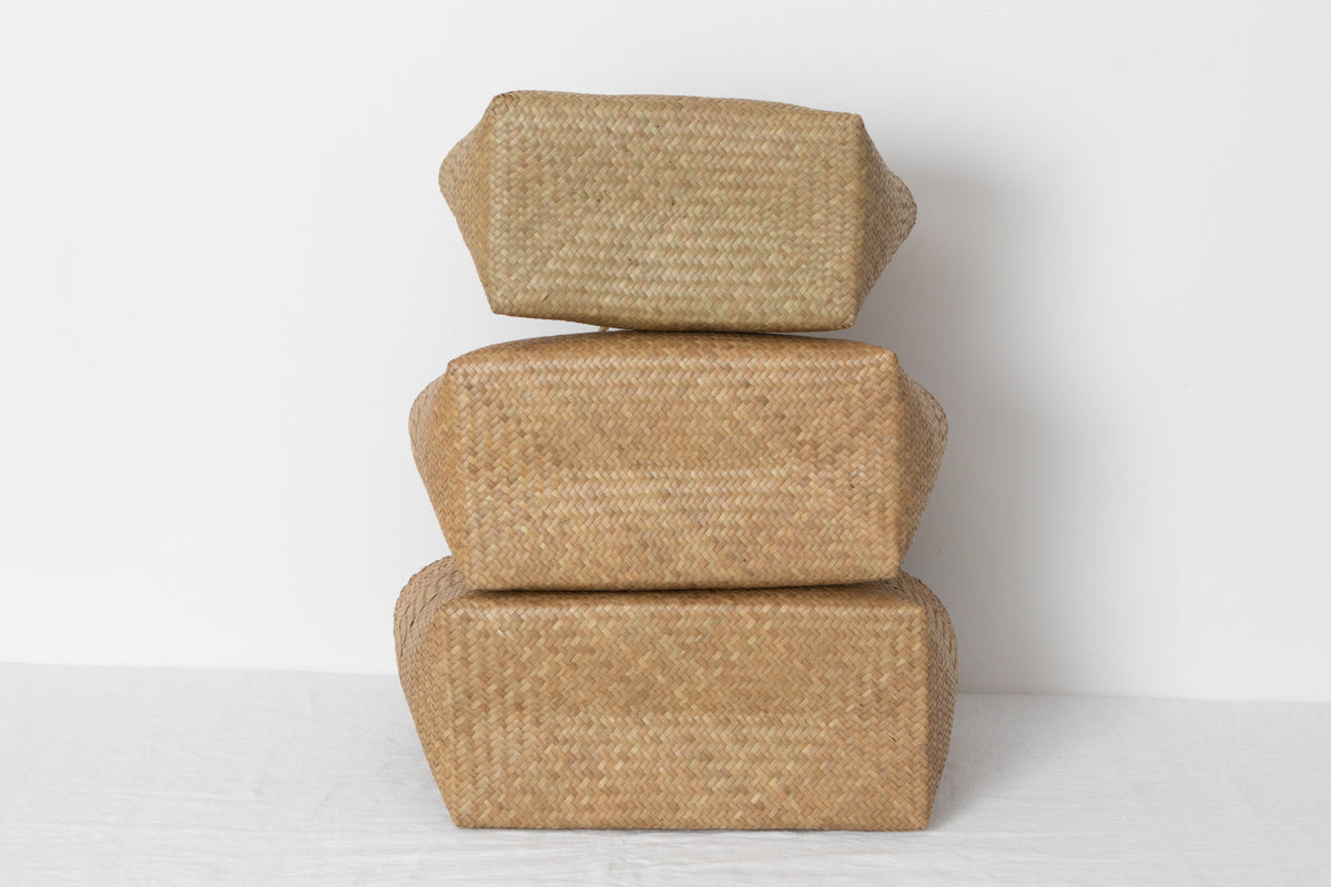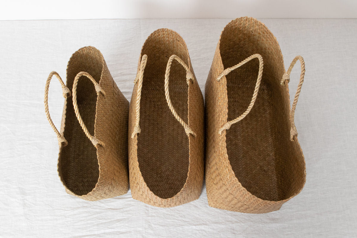 若い世代の編み手が少ないながらも、今、改めてタイ国内でも、こうした自然素材製品の良さが見直され、若い人たちがかごを手に取るようになってきているとのこと。