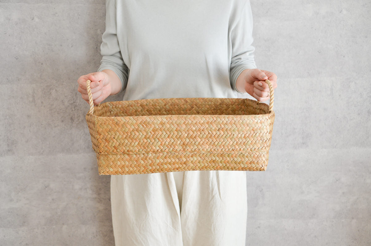 若い世代の編み手が少ないながらも、今、改めてタイ国内でも、こうした自然素材製品の良さが見直され、若い人たちがかごを手に取るようになってきているとのこと。