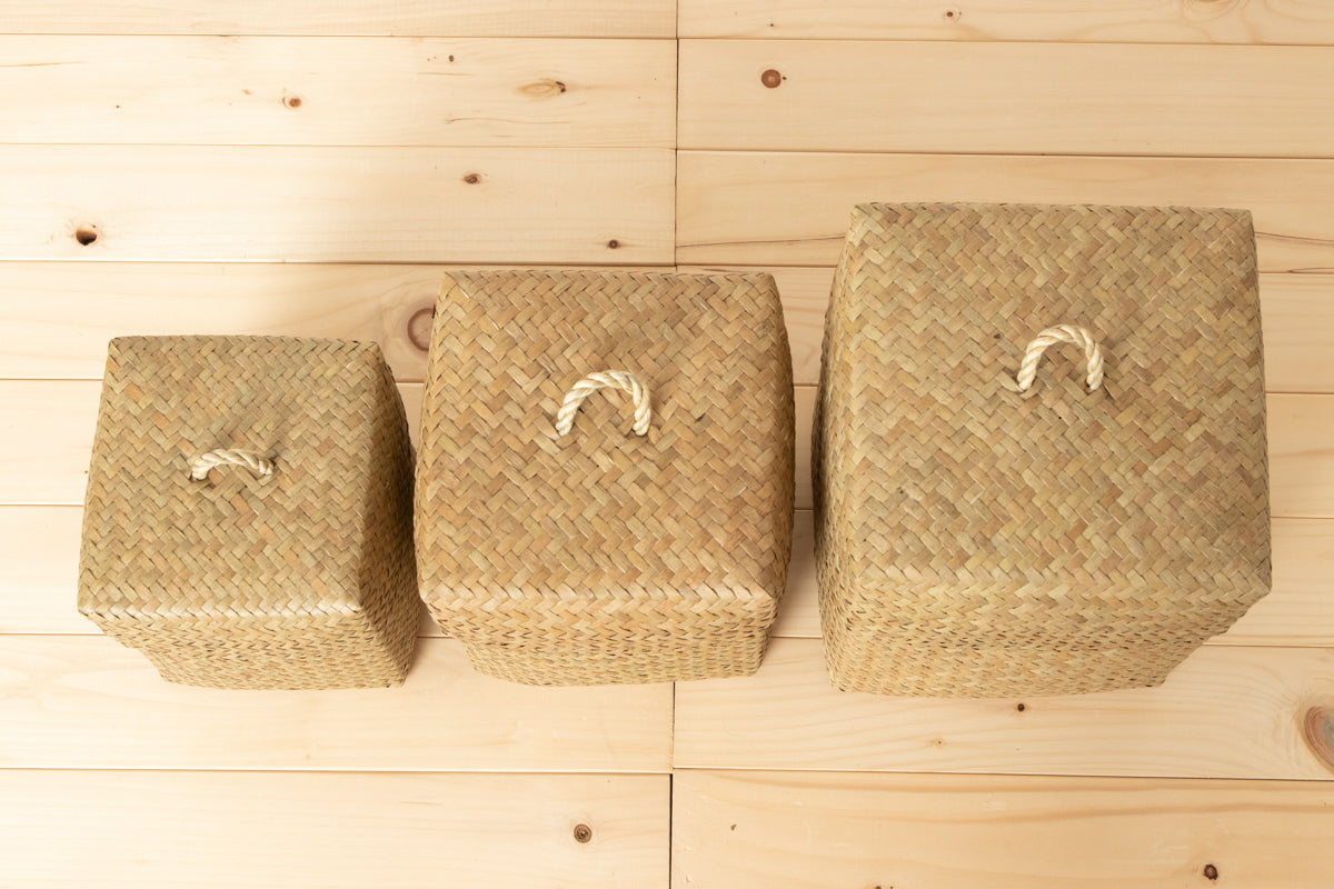 蓋付き、角型で背の高い整理かご「S、M、L」3サイズをご紹介します。