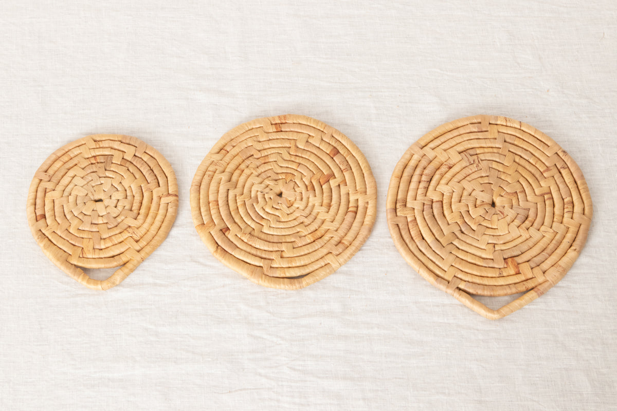 ウォーターヒヤシンスで編まれた鍋敷きです。