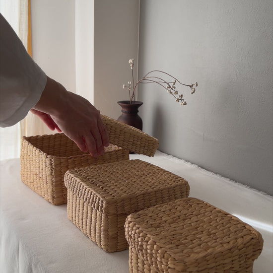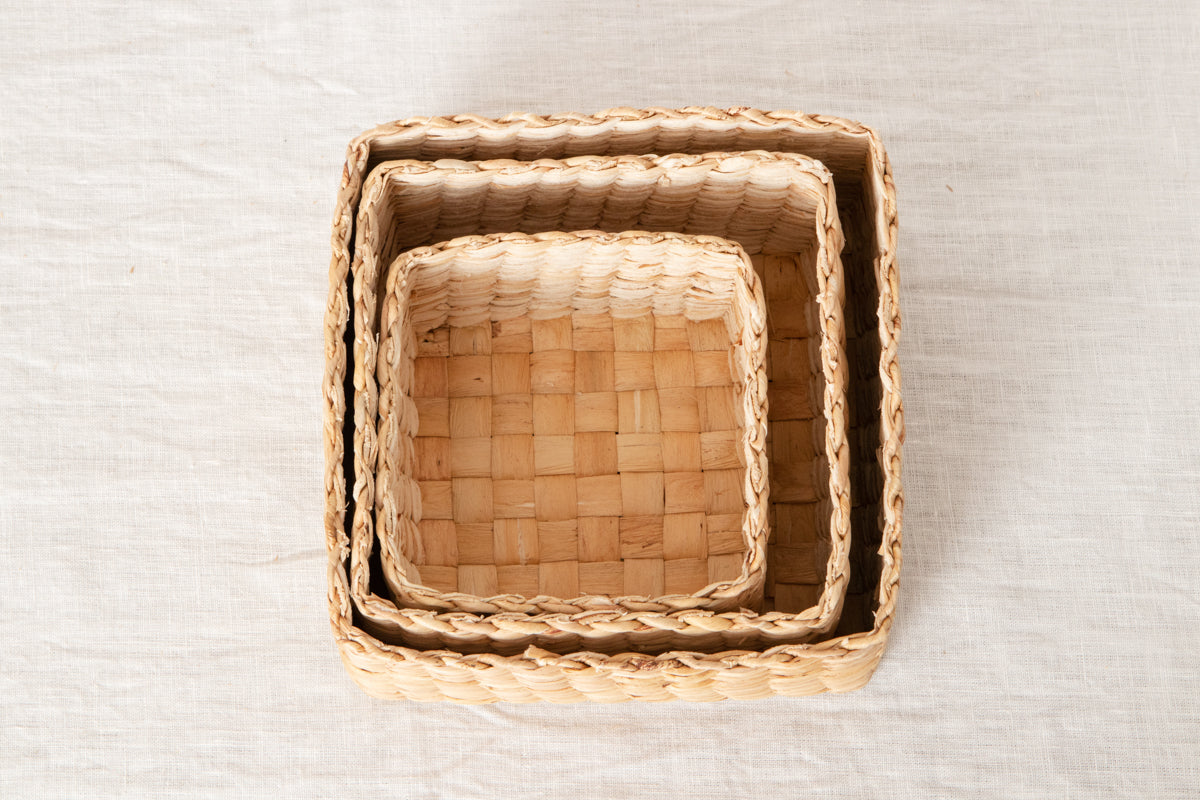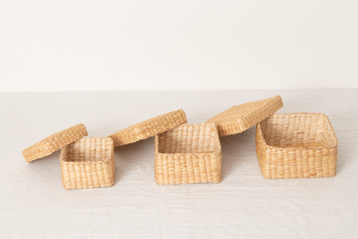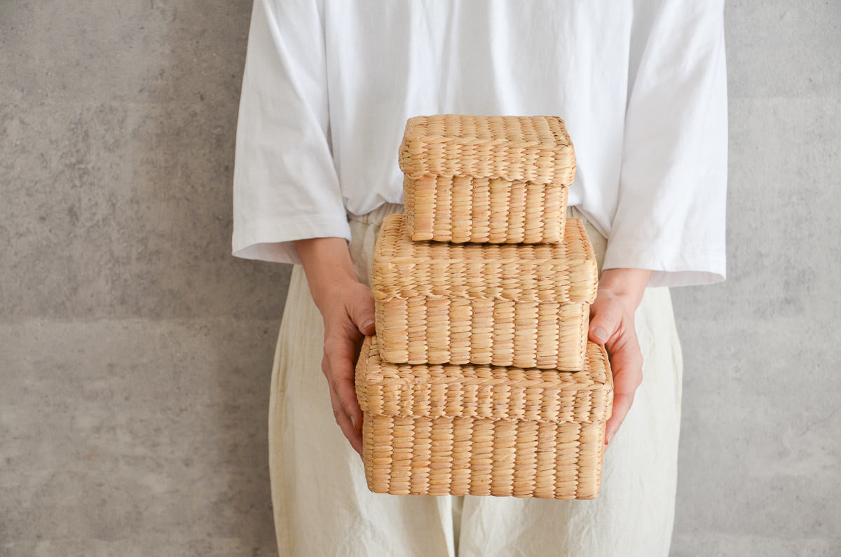 小さめ、箱型の蓋付きかご、S・M・Lの3サイズをご紹介します。