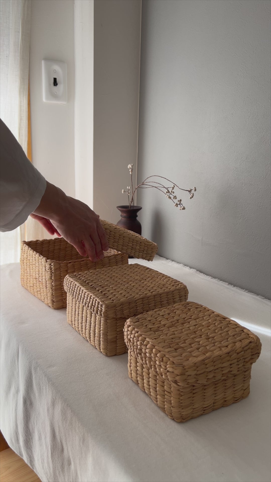 タイ/ウォーターヒヤシンス スクエアボックス 蓋付き S・M・L 3サイズ 3115211