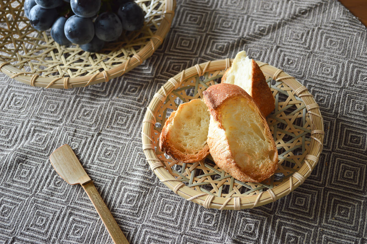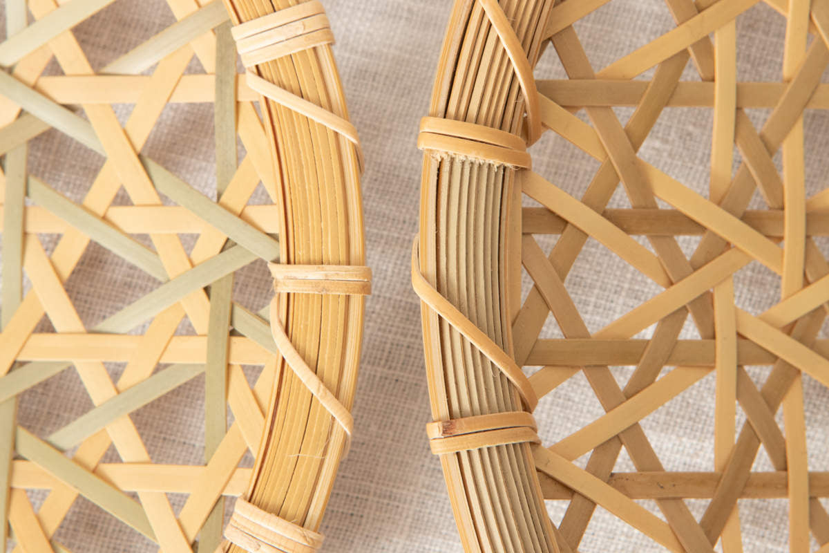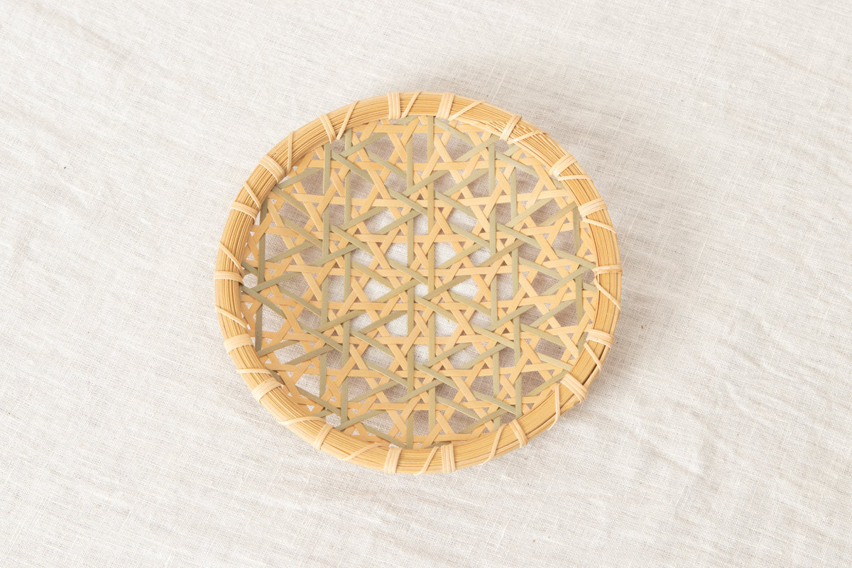 こちらは白竹と青竹を使って作られた盛り皿です。
