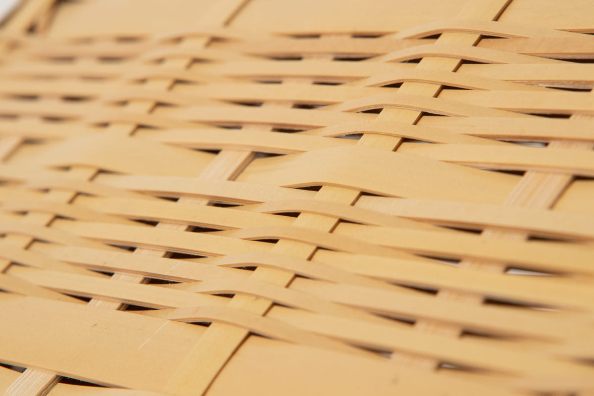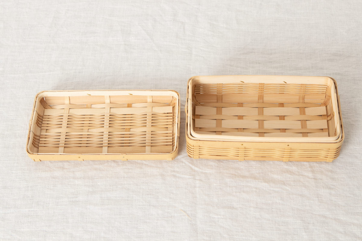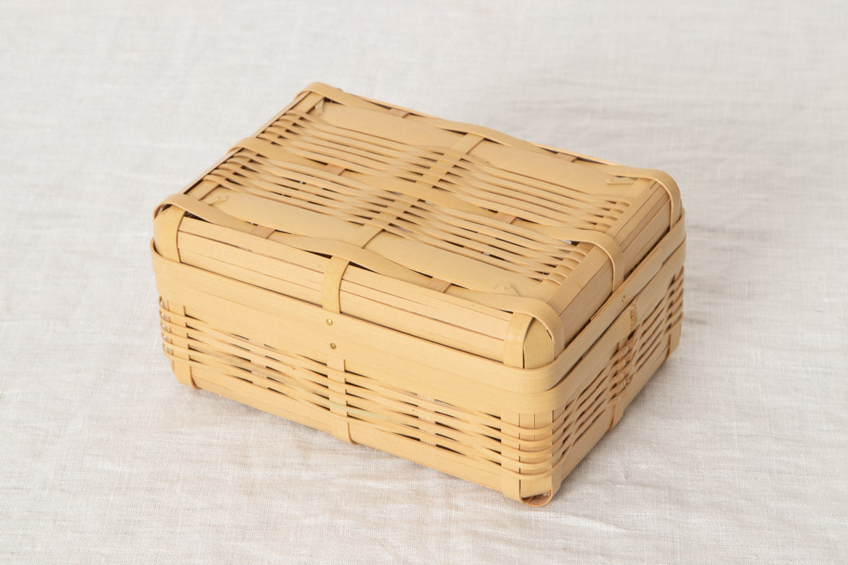 九州は日本のなかでもとくに、良質な真竹が豊富に採れる地でこちらの弁当かごも、九州で採れた真竹を白くさらした「白竹-しろたけ-」を材料にしています。