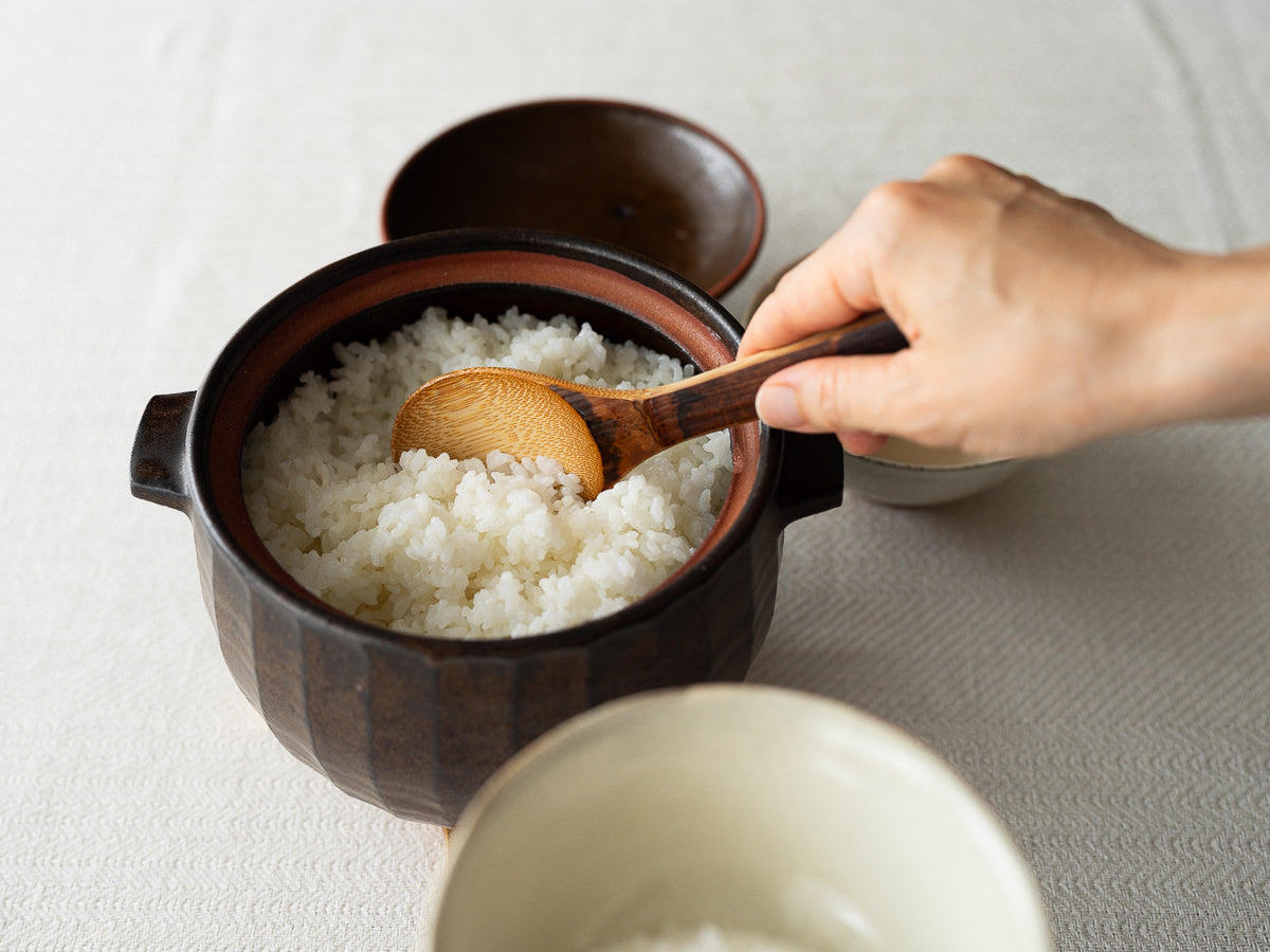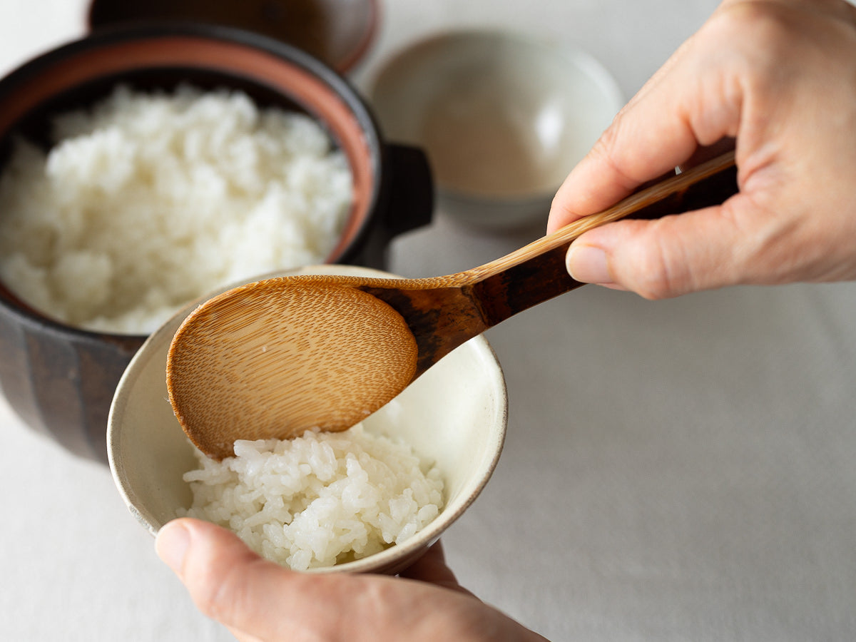 軽く手に馴染み、想像以上に使いやすいです。自立タイプではないですが、柄の節があることで置いてもすくう部分が浮いて、お米がくっついていても気になりません。愛用したいと思えるお品です。