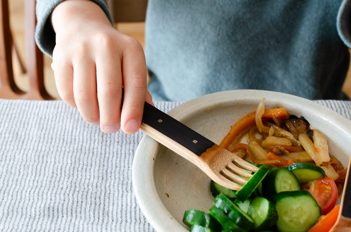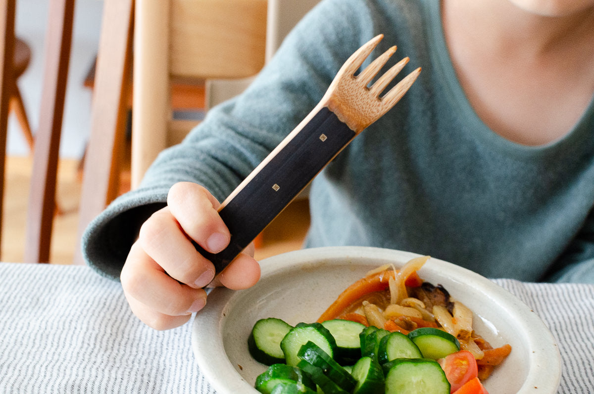 こちらは炭竹-すみたけ-で作られた子どもスプーン・フォークです。