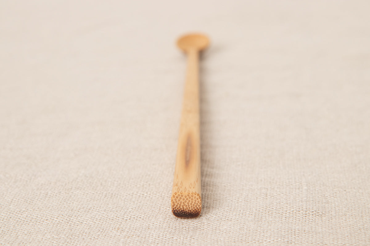 炭を焼く工程で出る大量の煙に、ご自身が削った竹のスプーンなどを