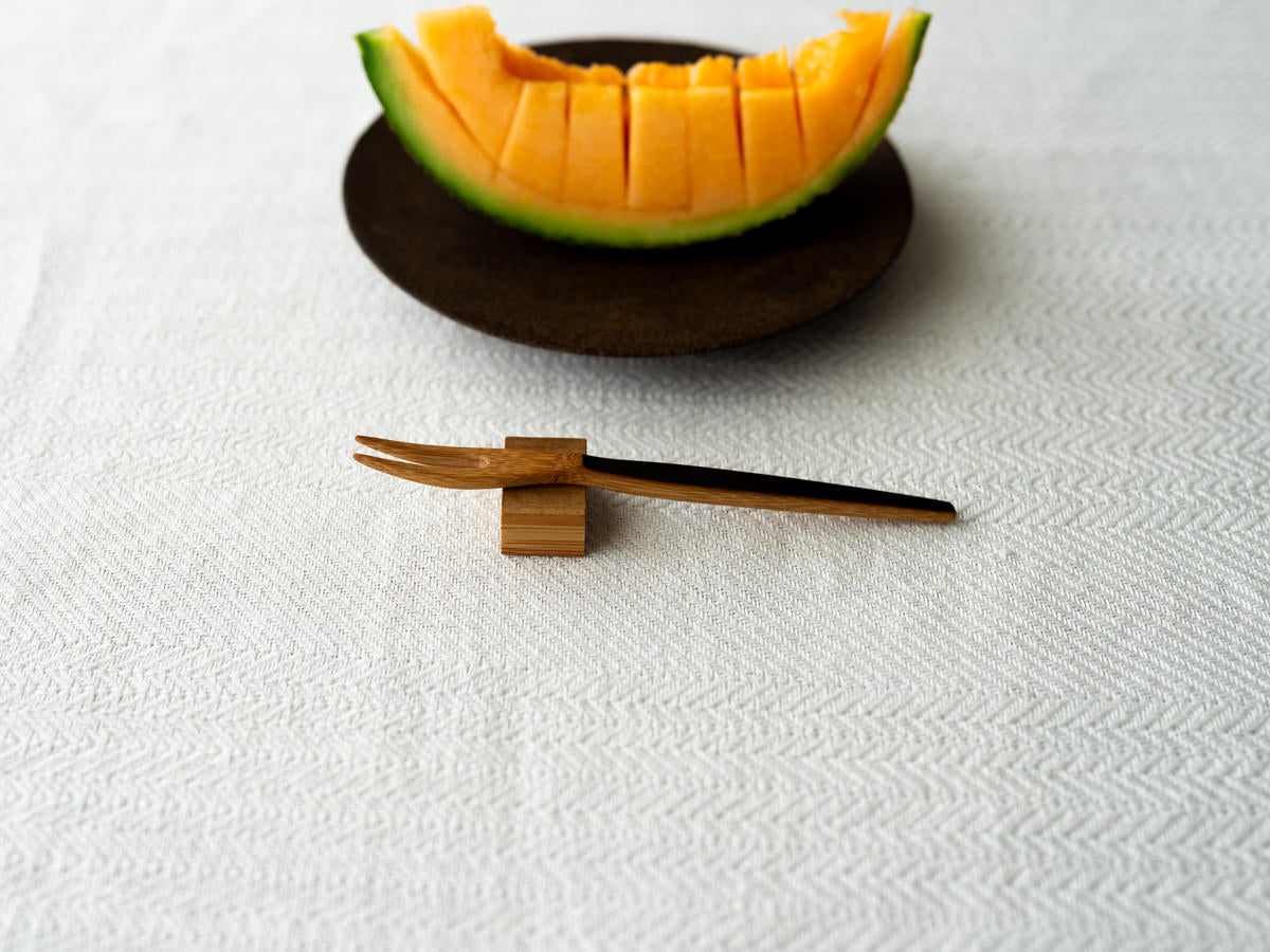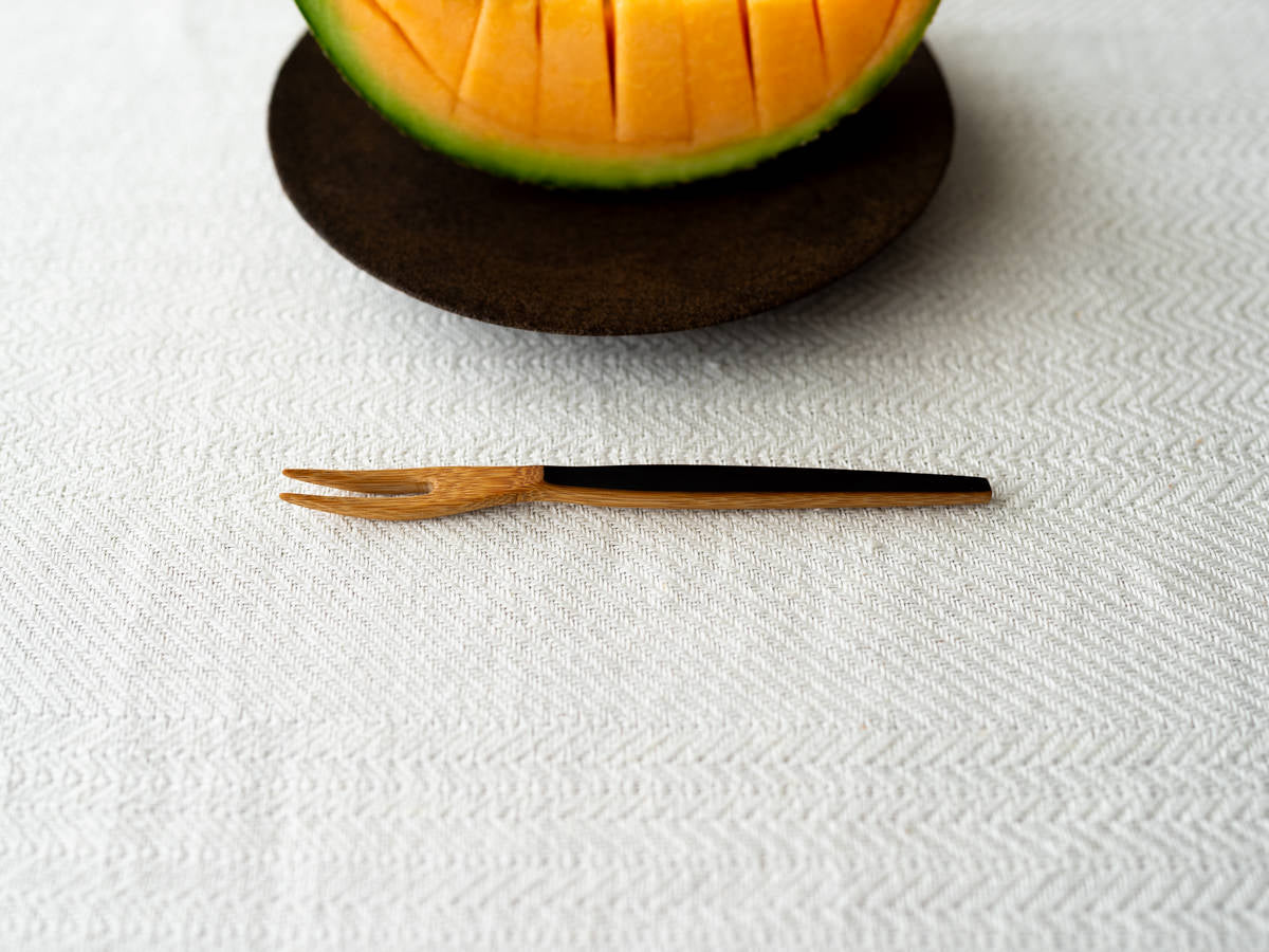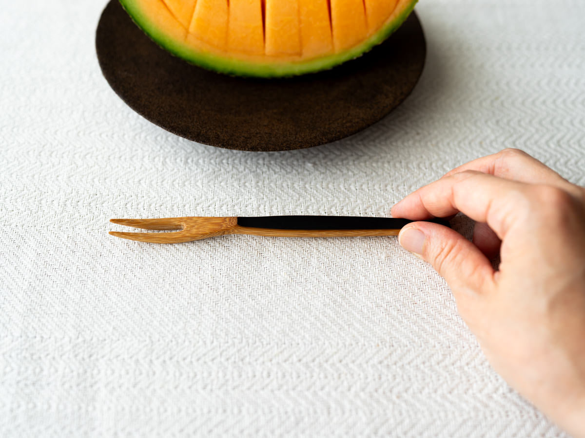 炭竹のフルーツフォークで、季節のくだものをどうぞおたのしみください。