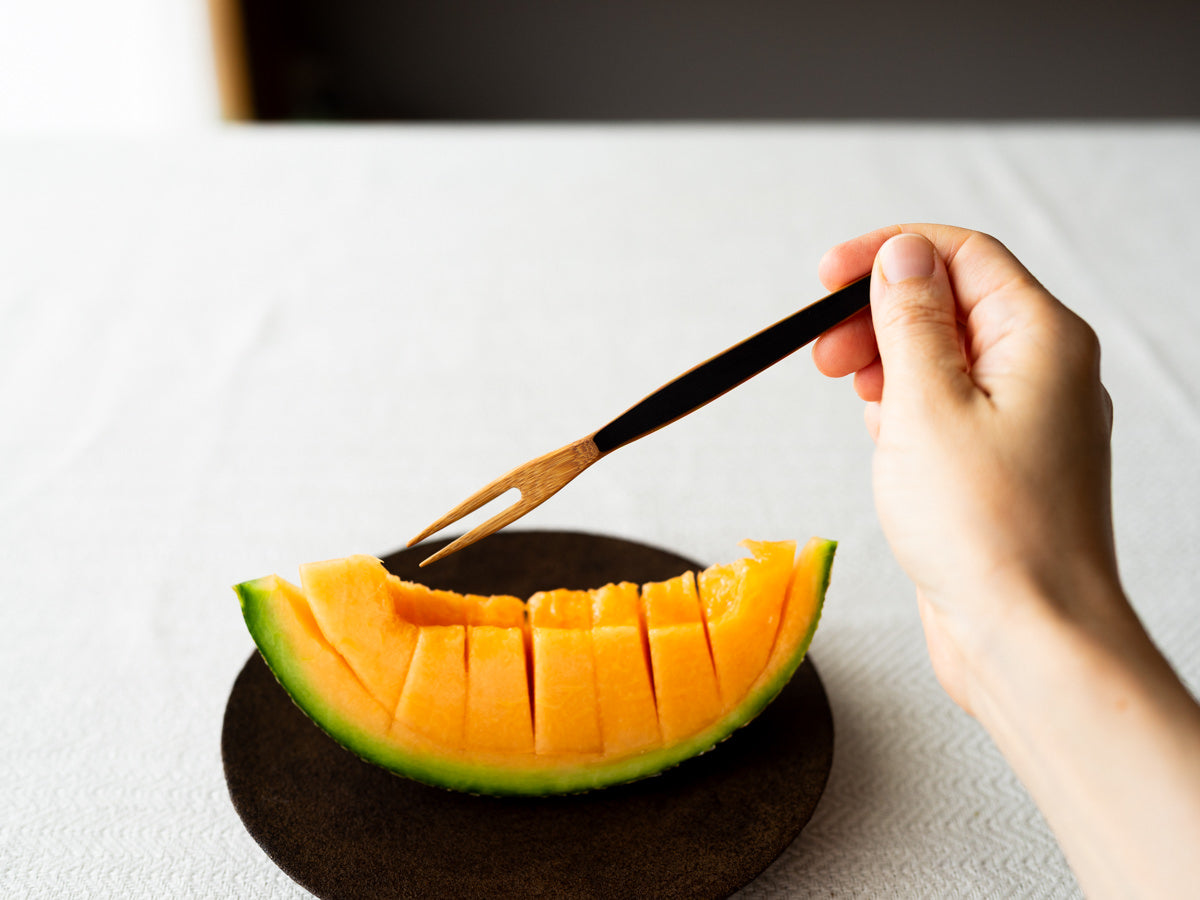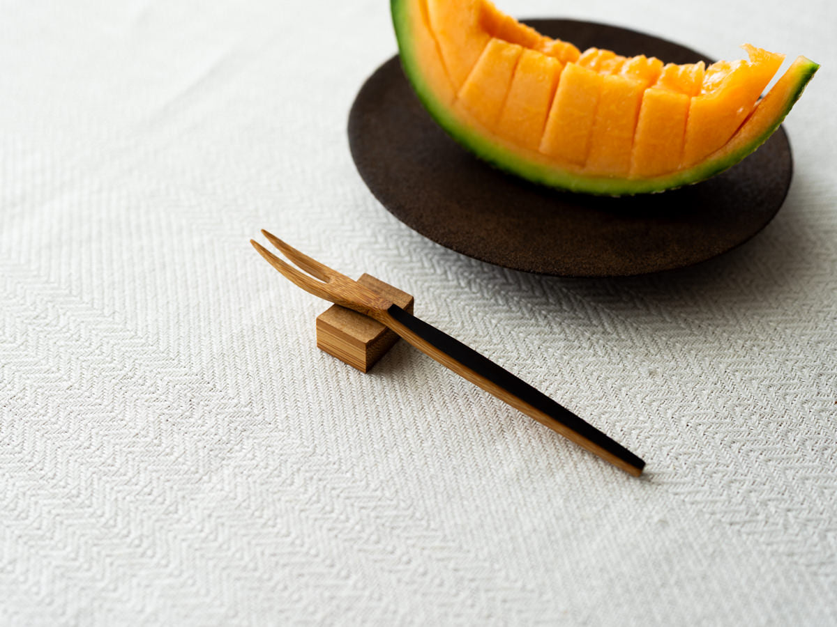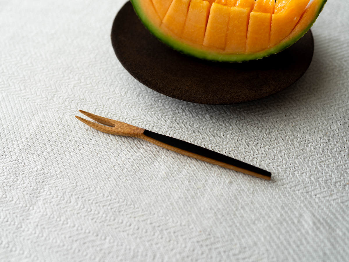炭竹のフルーツフォークで、季節のくだものをどうぞおたのしみください。