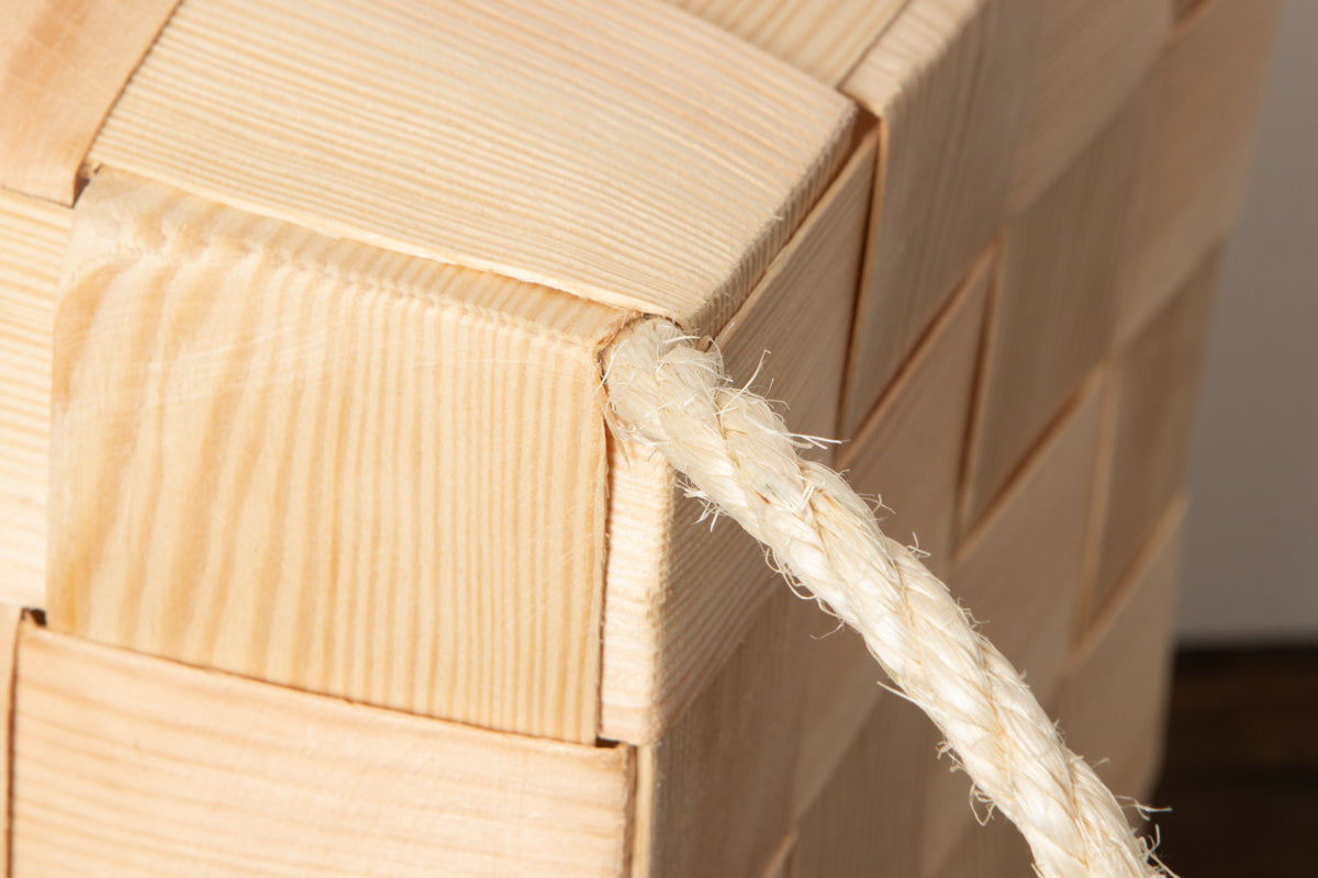 木をそのまま編んでいる様な迫力がありますが、触れてみると、表面は滑らかな感触です。 -