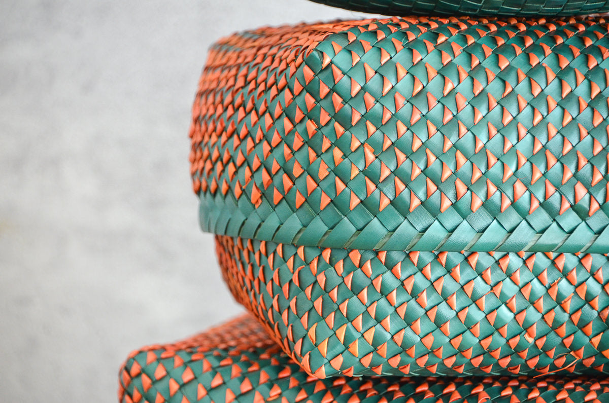 伝統的に作られてきた、パーム(ヤシ)の葉を使って編まれたバスケット。