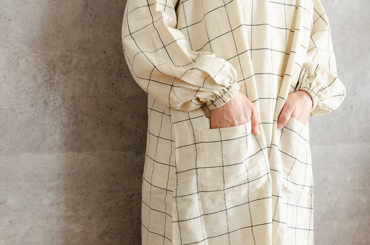 こちらは、インドの「カディ」を素材にして作られた、カバータイプのエプロンです。