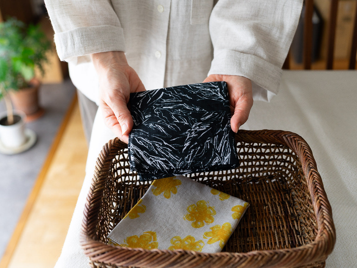 つかいつづけていると、ハリのある生地感からくたっとしたなめらかな質感に変わっていきます。