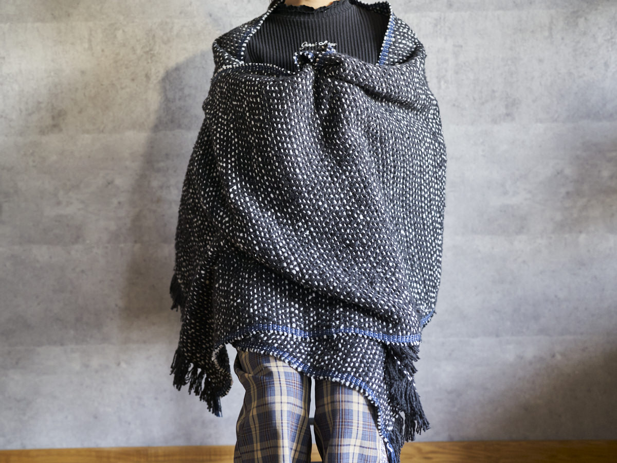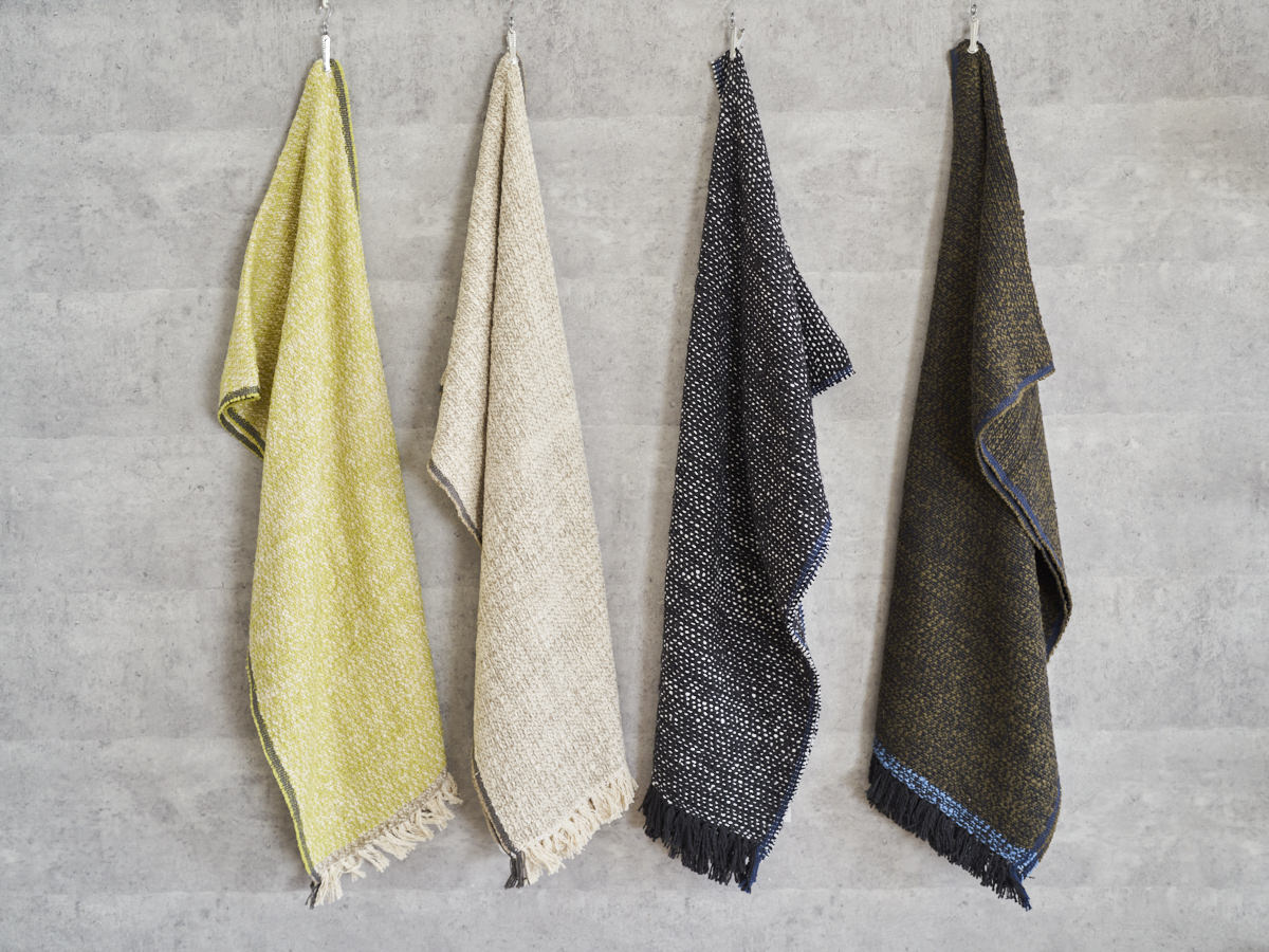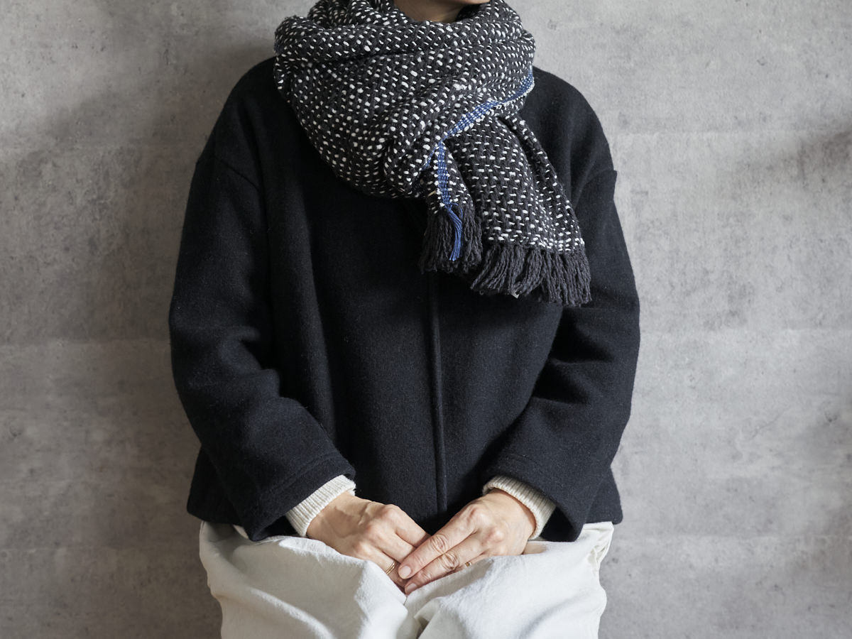 ゆっくりとワッフル状に織った、オリジナル生地のストールをご紹介します。