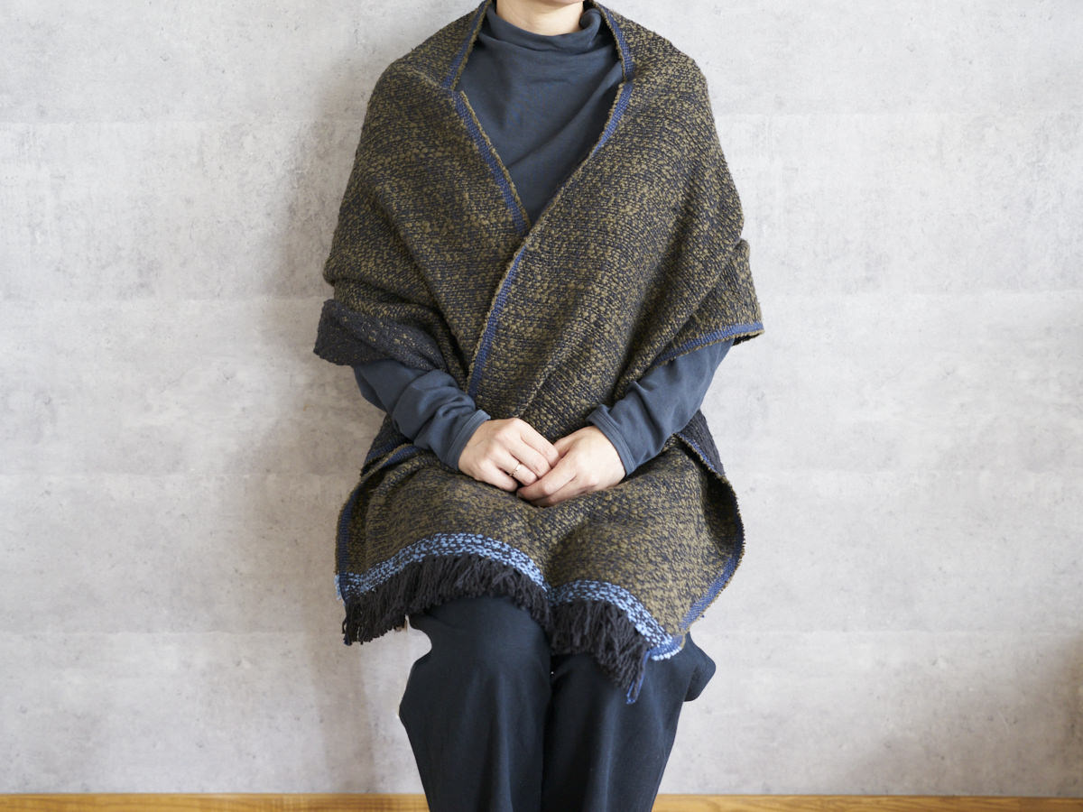 ゆっくりとワッフル状に織った、オリジナル生地のストールをご紹介します。