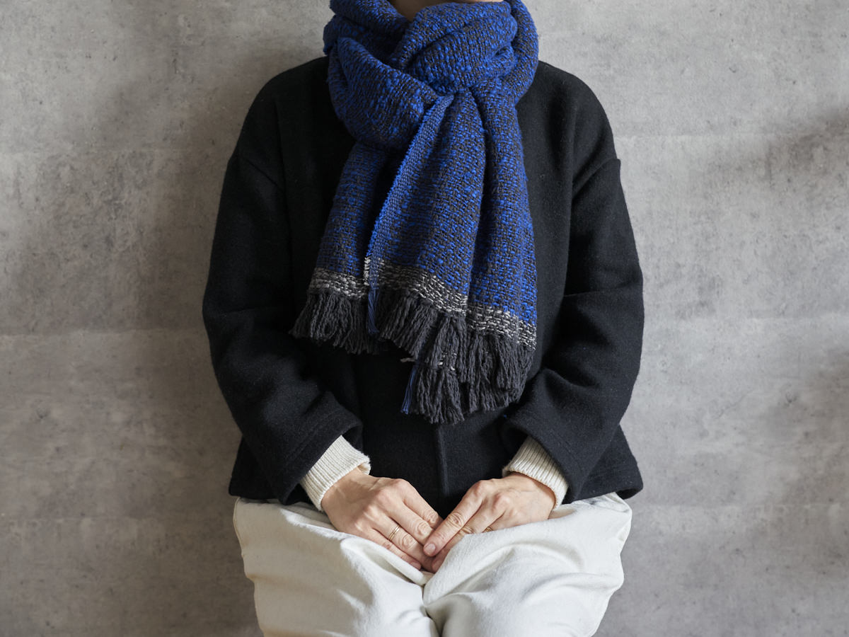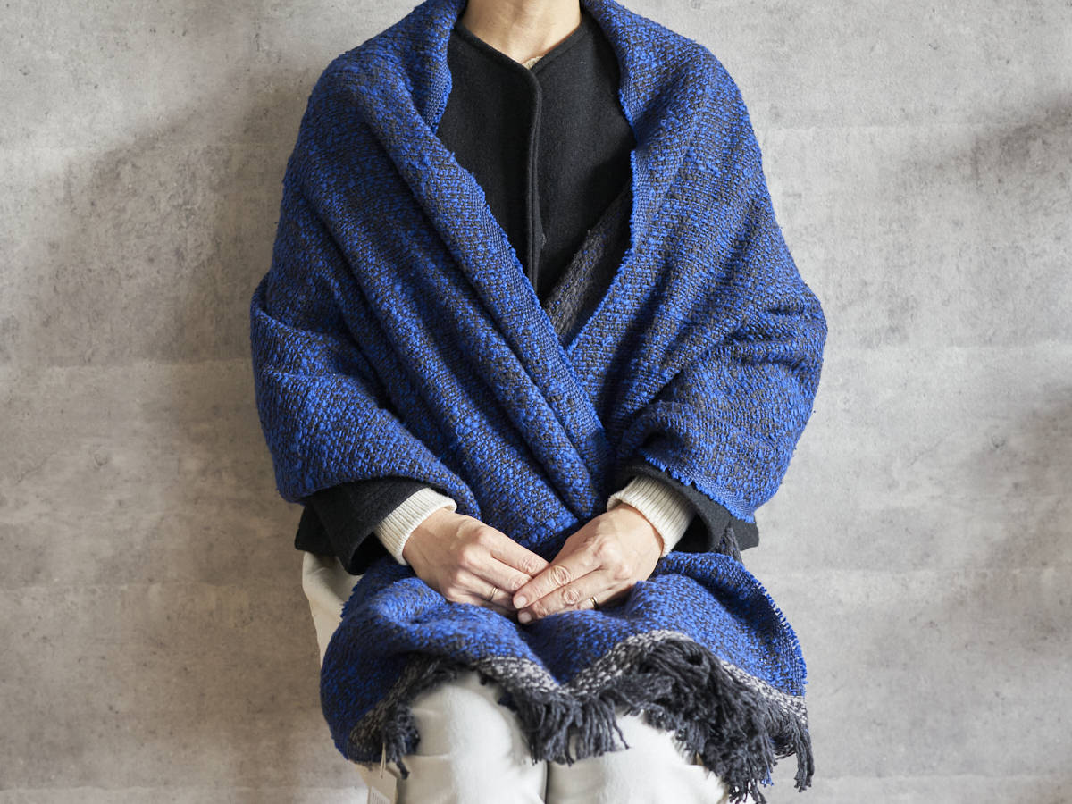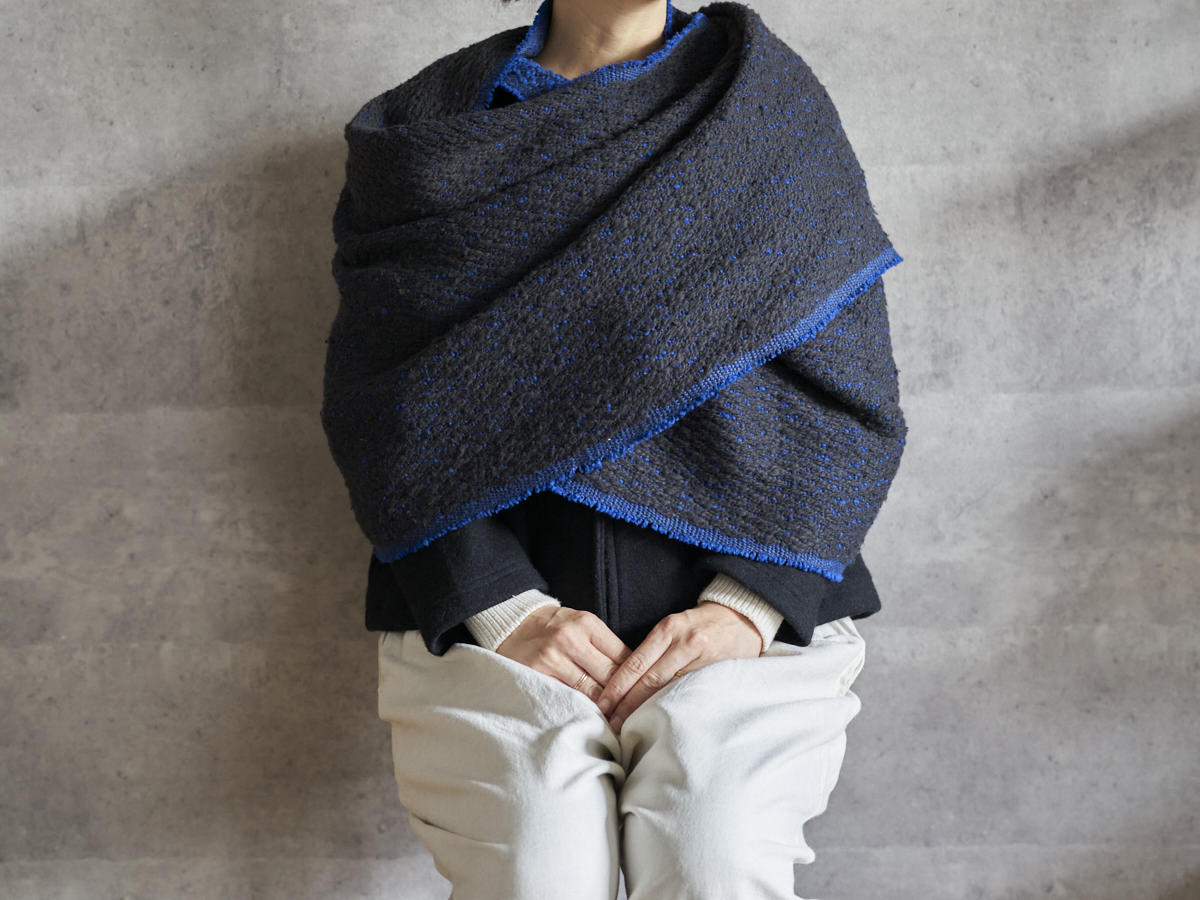 ゆっくりとワッフル状に織った、オリジナル生地のストールをご紹介します。