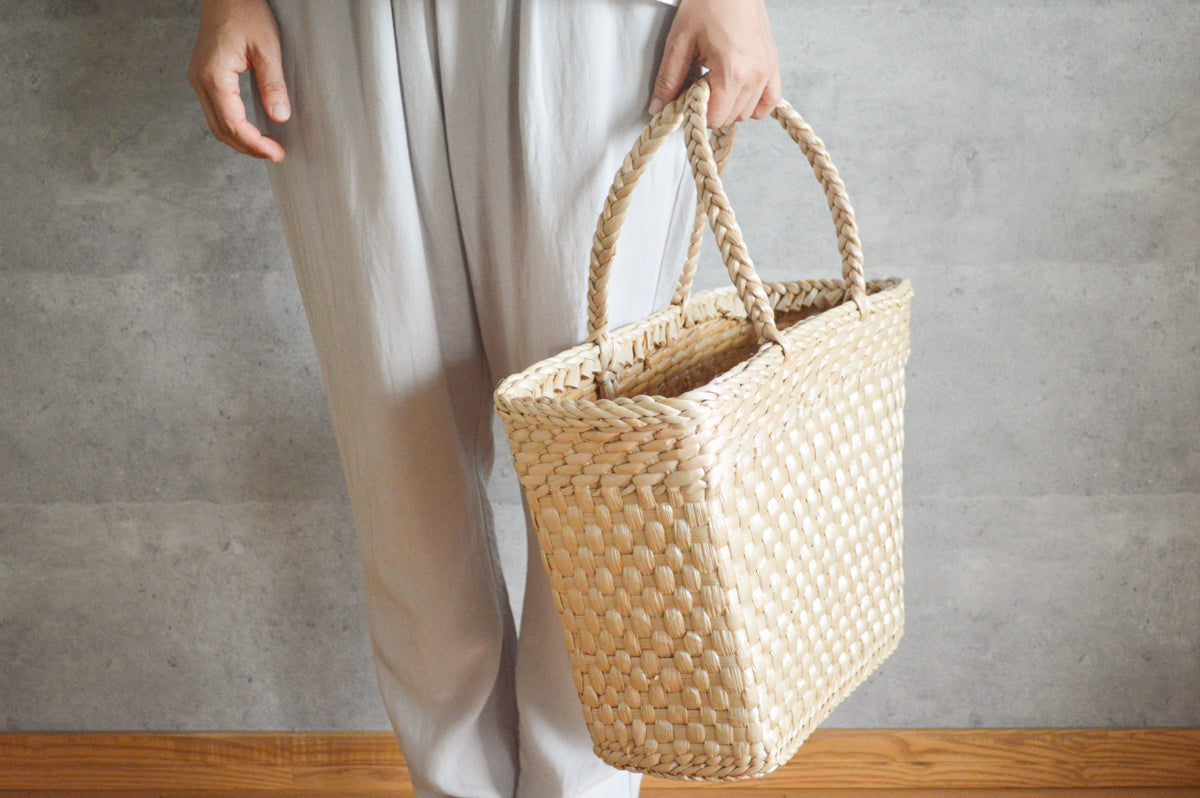 こちらは、ポーランドに自生するがまを使ったトートバッグです。