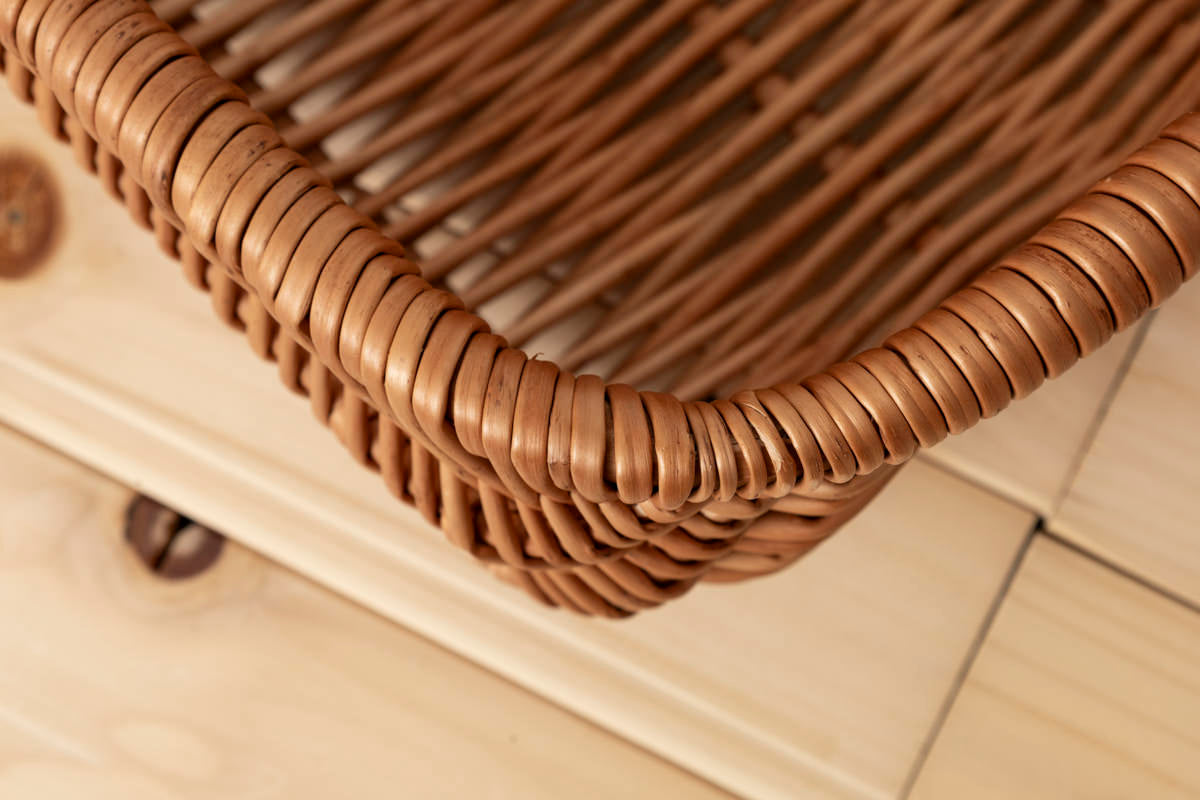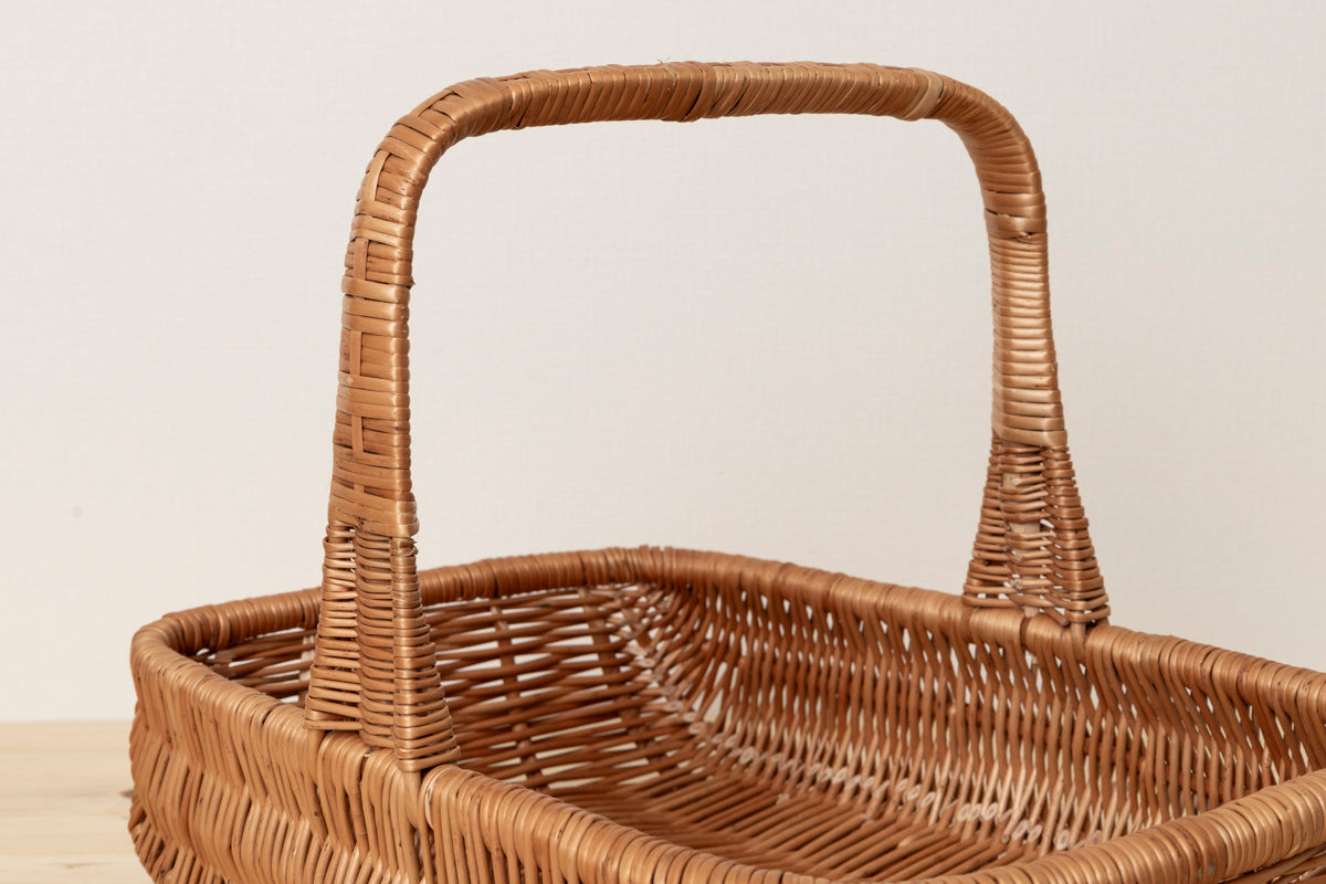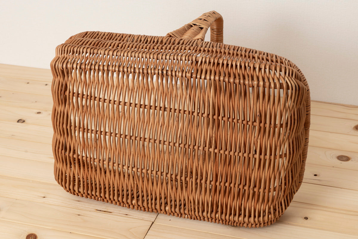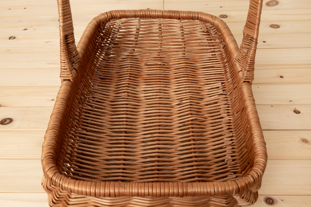 こちらは大ぶりで浅くて、横長の形をしたバスケットです。