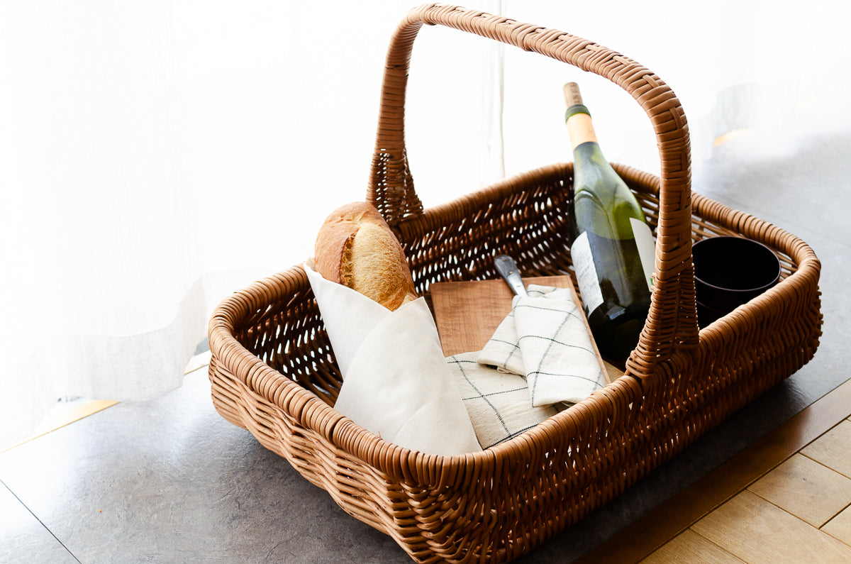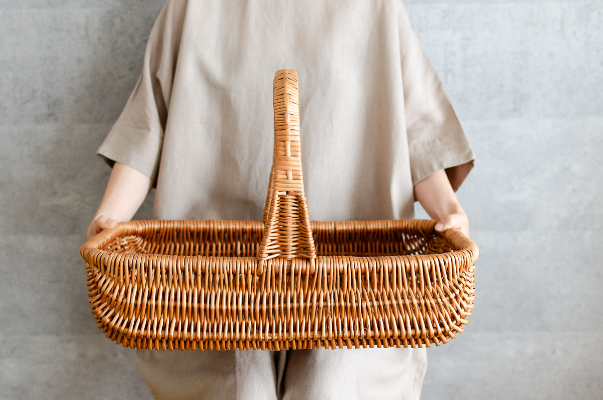 とにかく便利な持ち手つきのかご。
