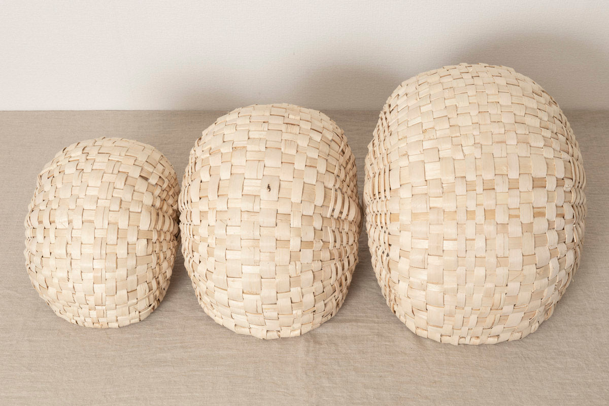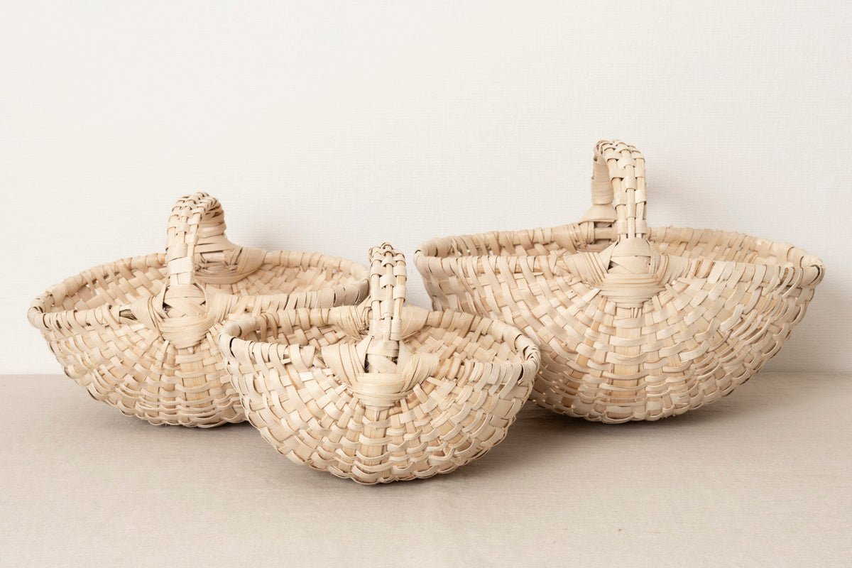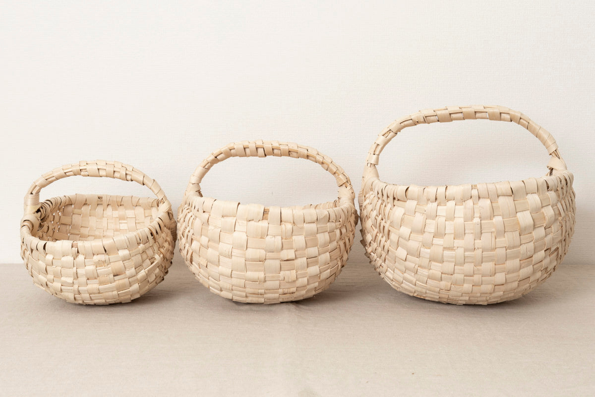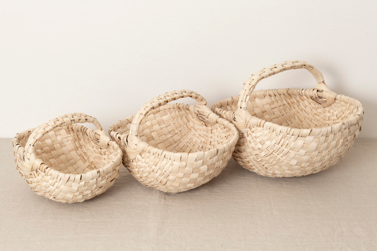 こちらではそのヘーゼルの木をつかってつくられた手つきバスケットをS、M、Lの3サイズでご紹介いたします。