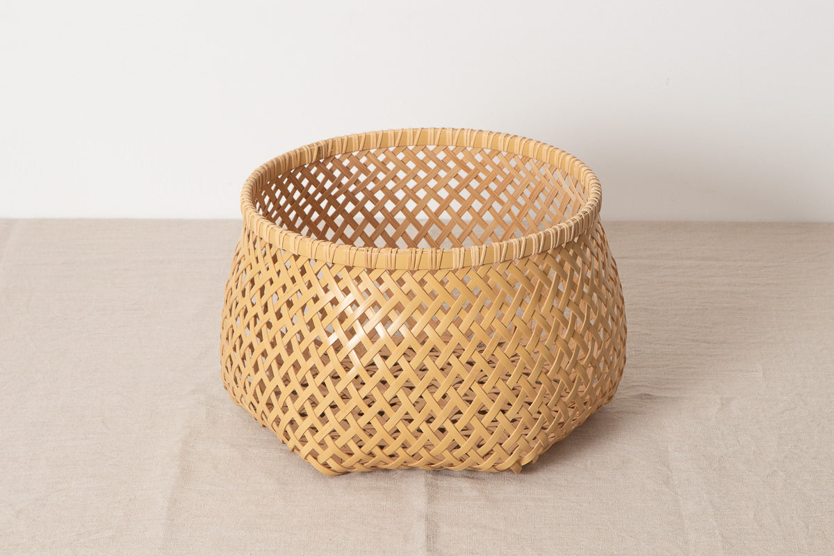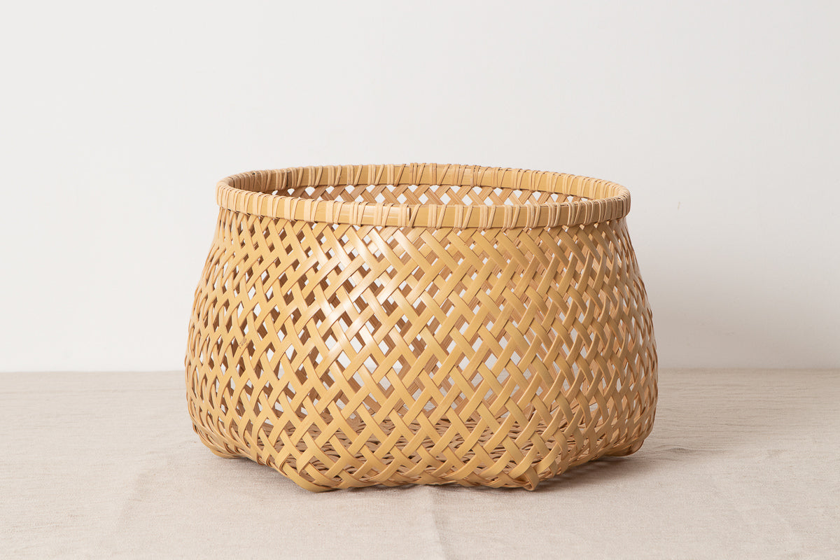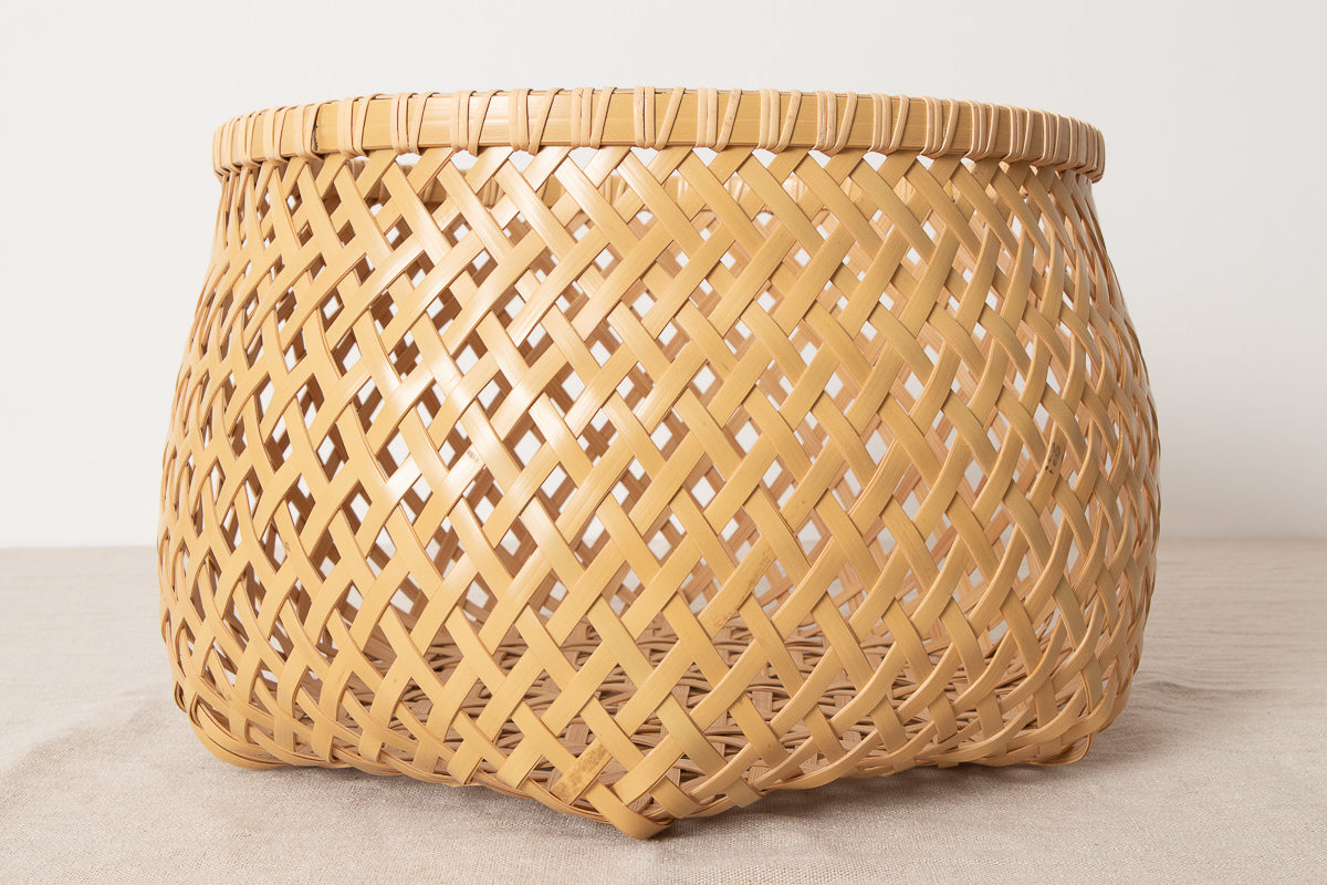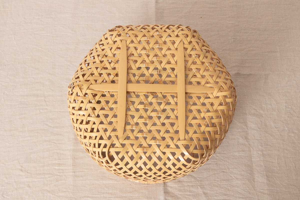こちらは白竹を使って編まれた丸い、深型のかごです。