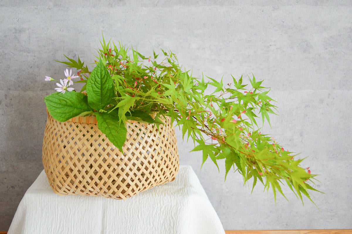 白竹が華やかな花や鮮やかな葉を引き立ててくれます。
