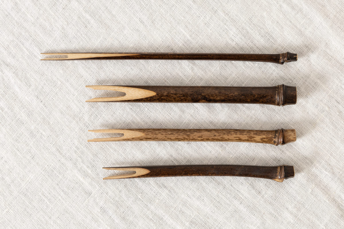 こちらは黒竹(くろちく)を使って作られたフォークです。