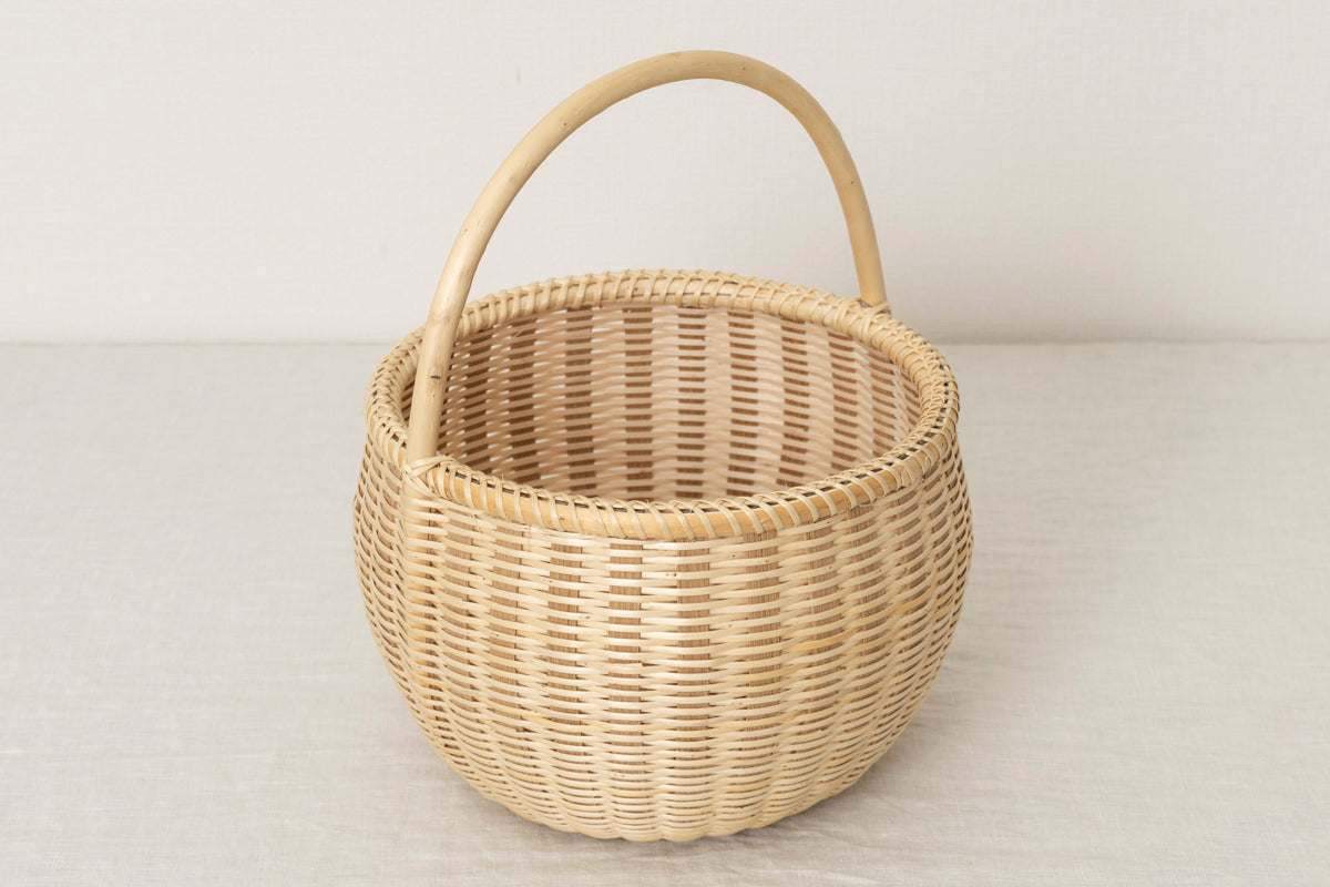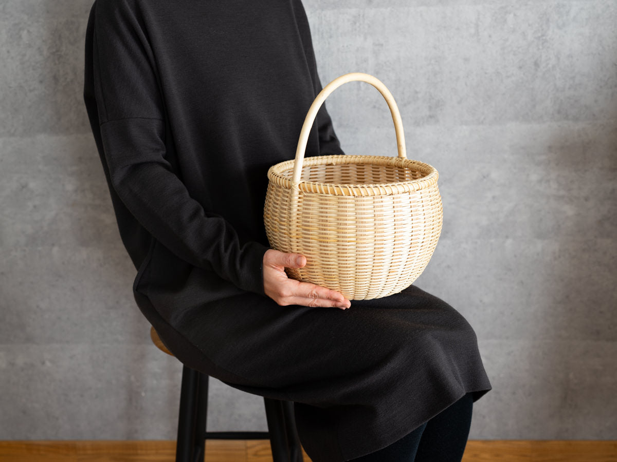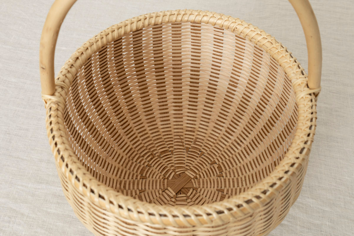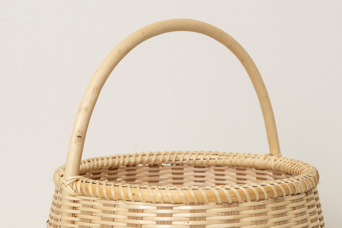 こちらは「やなぎ」と「オーク」を編んで作られた、持ち手のついたバスケット。