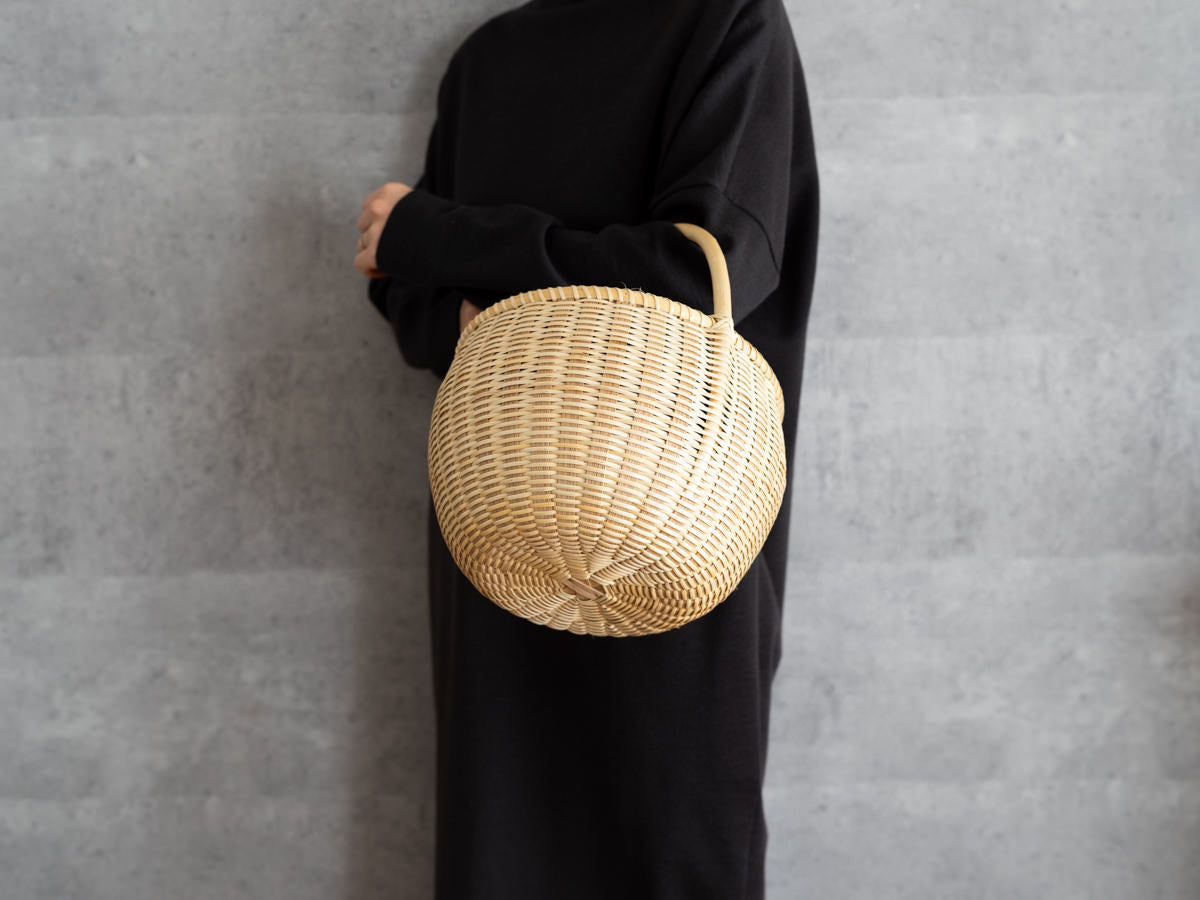 かごのやわらかい丸み、そして球体を思わせるかたちから