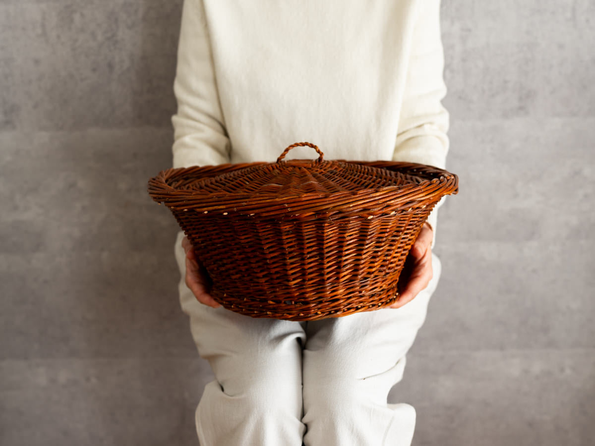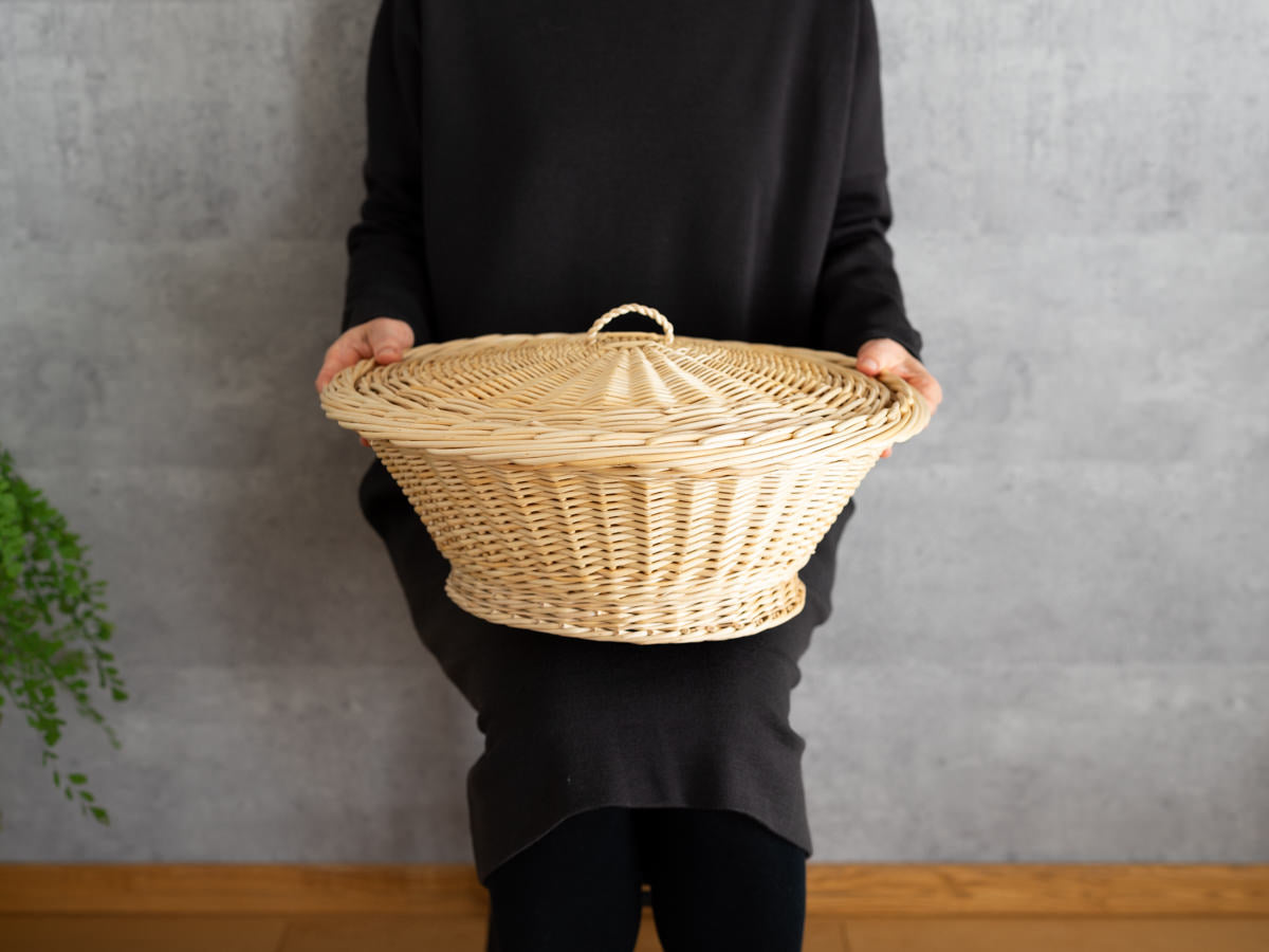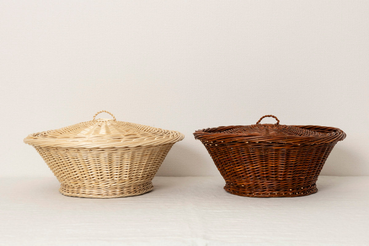 こちらは「やなぎ」を編んで作られた、蓋つきのバスケットです。