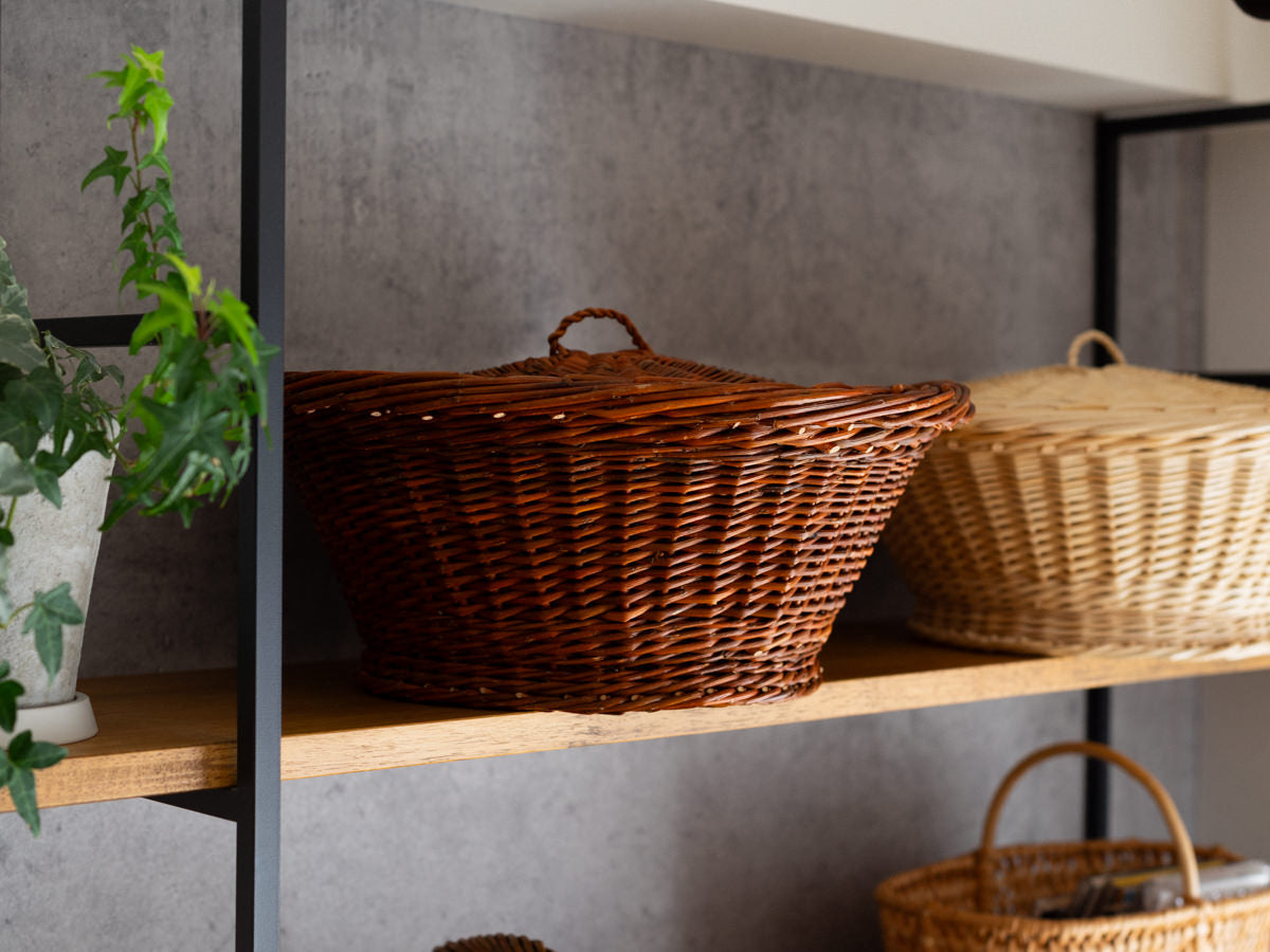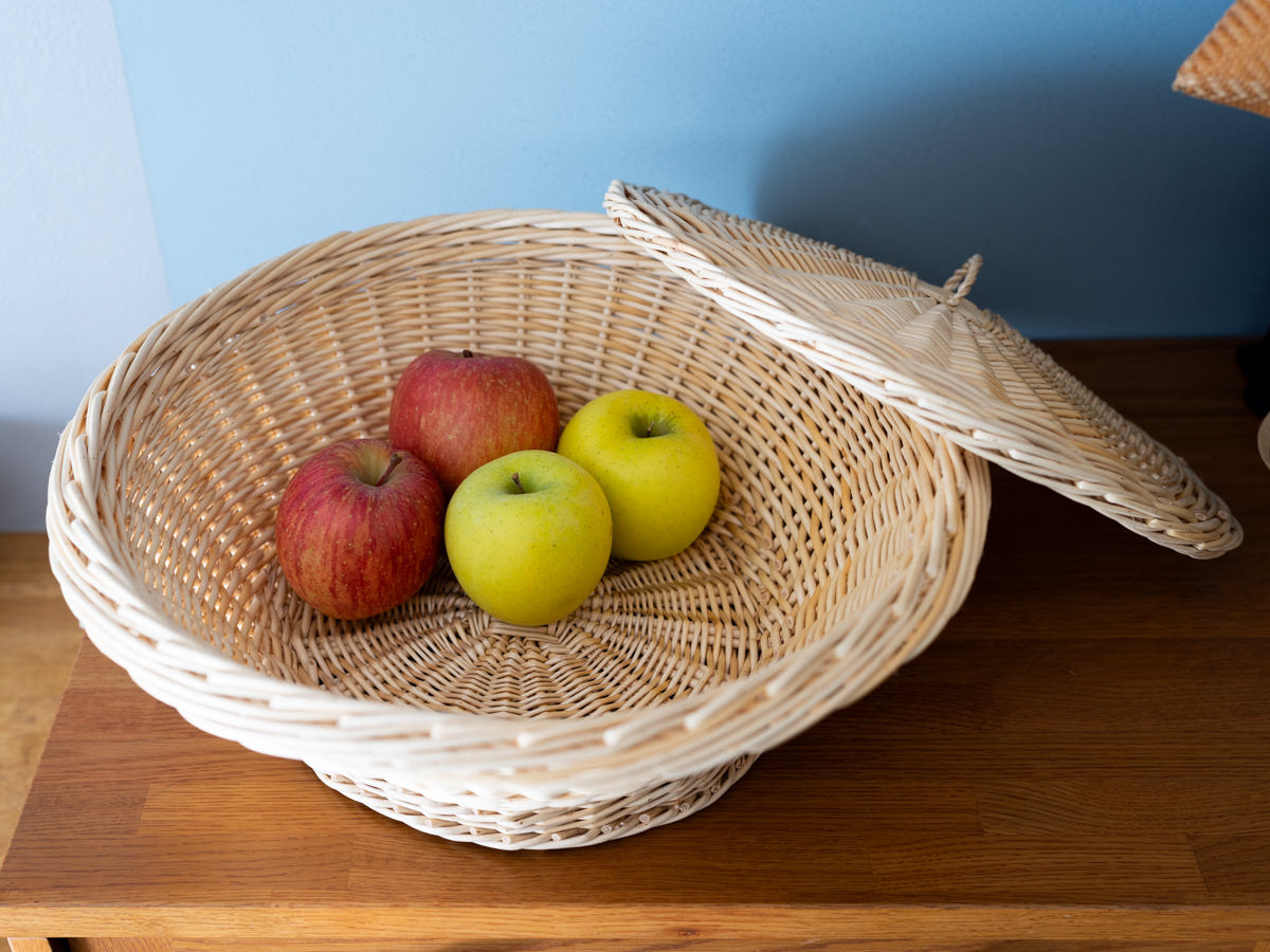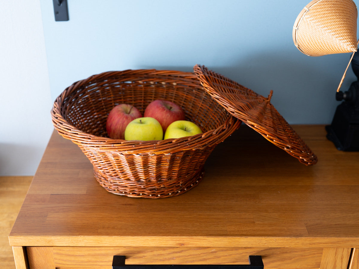 こちらは「やなぎ」を編んで作られた、蓋つきのバスケットです。