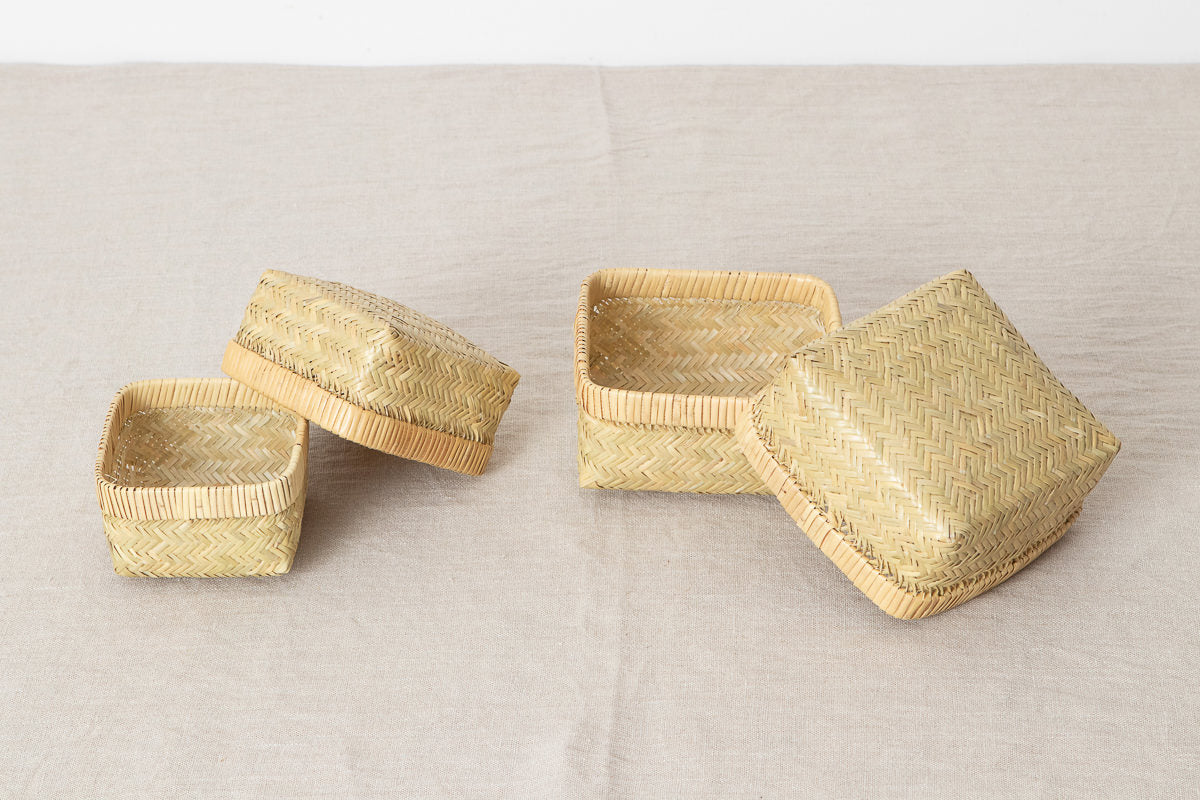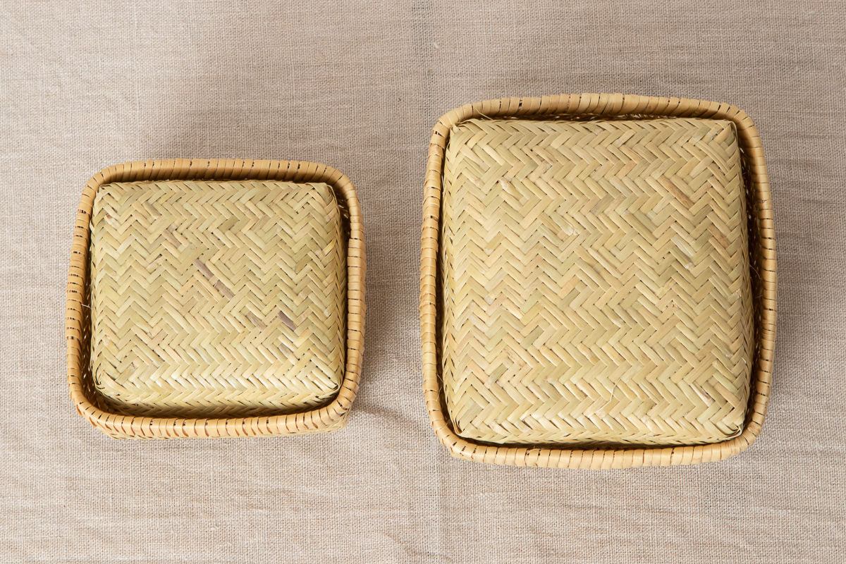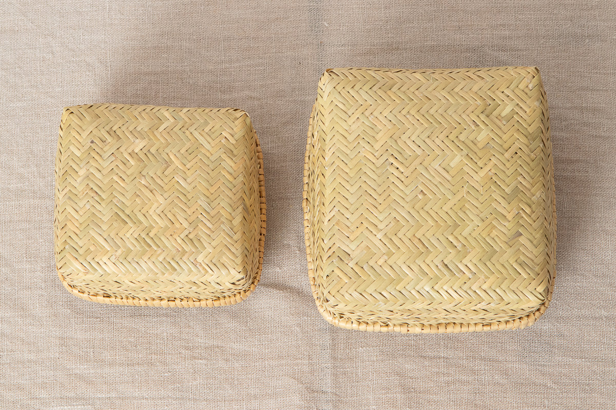 すず竹細工の中でも、このように身のかごと蓋のかごをそれぞれ作り
