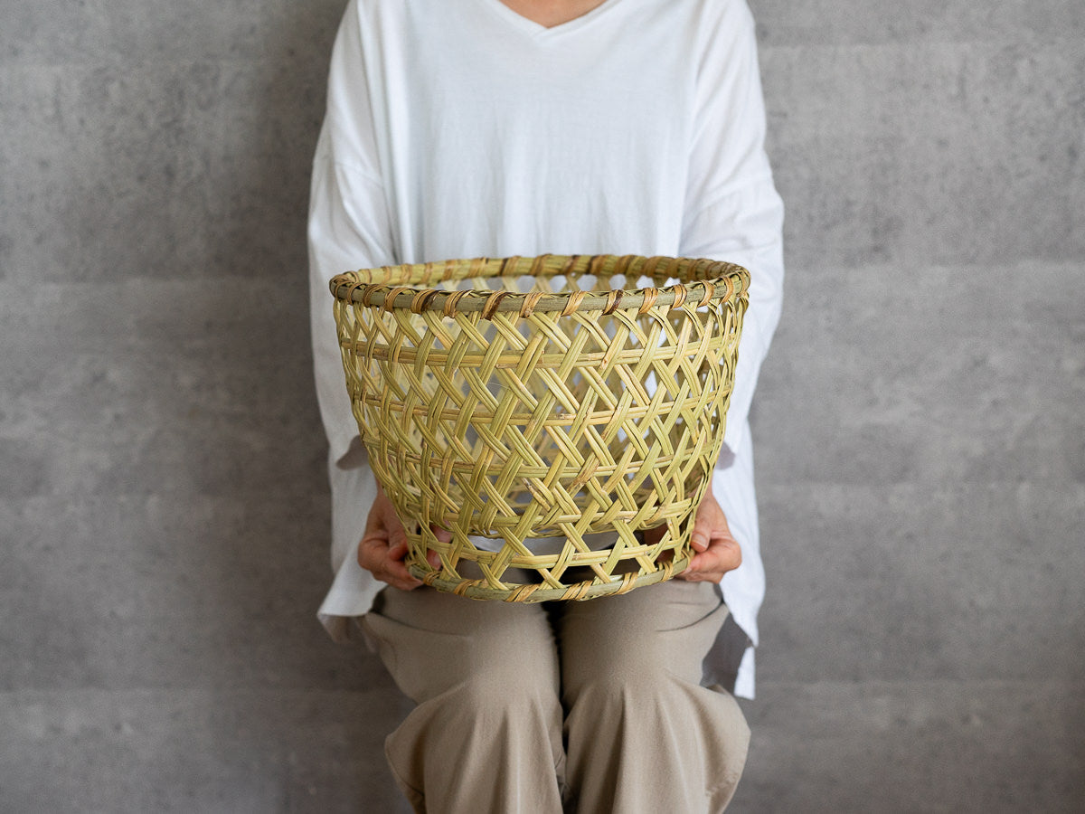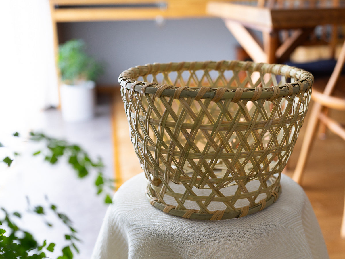 こちらはすず竹で編まれた、六つ目編みのかごです。