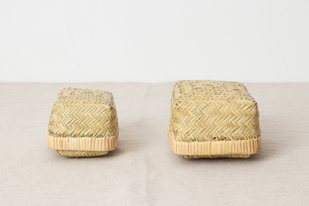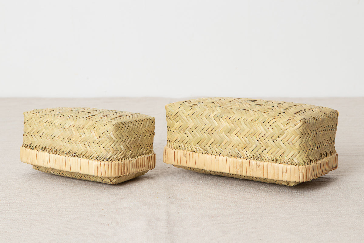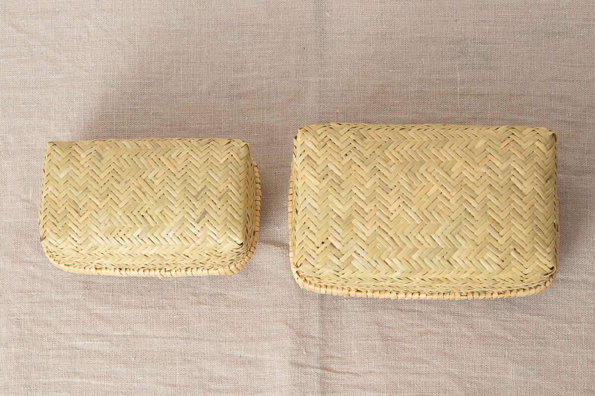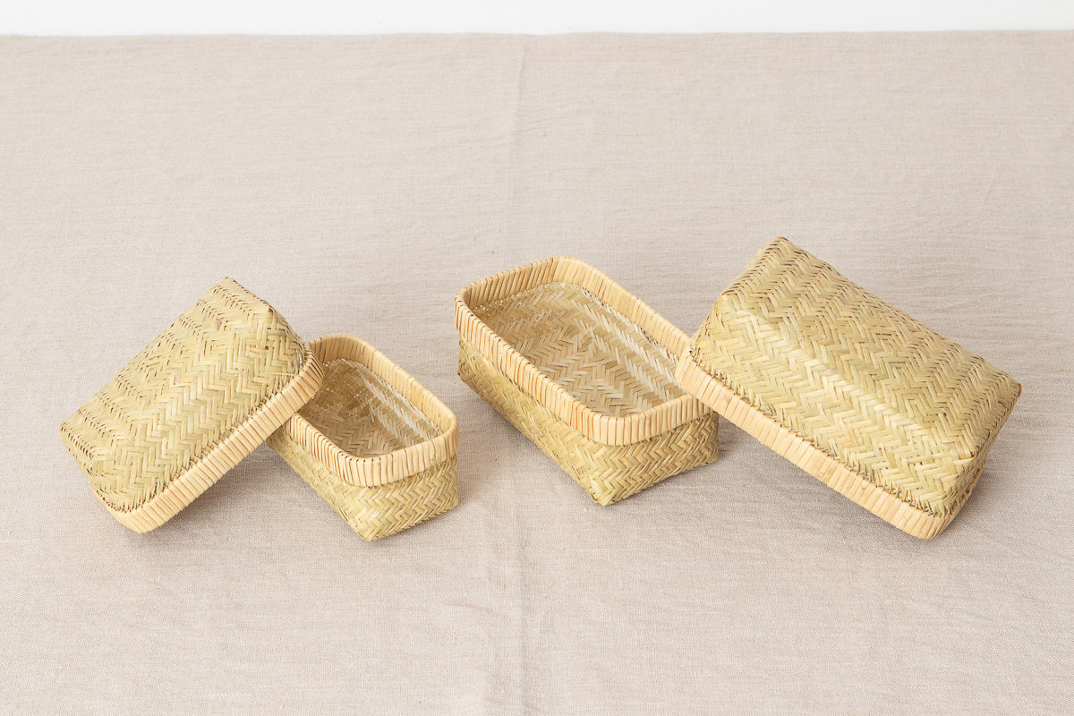 すず竹細工の中でも、このように身のかごと蓋のかごをそれぞれ作り