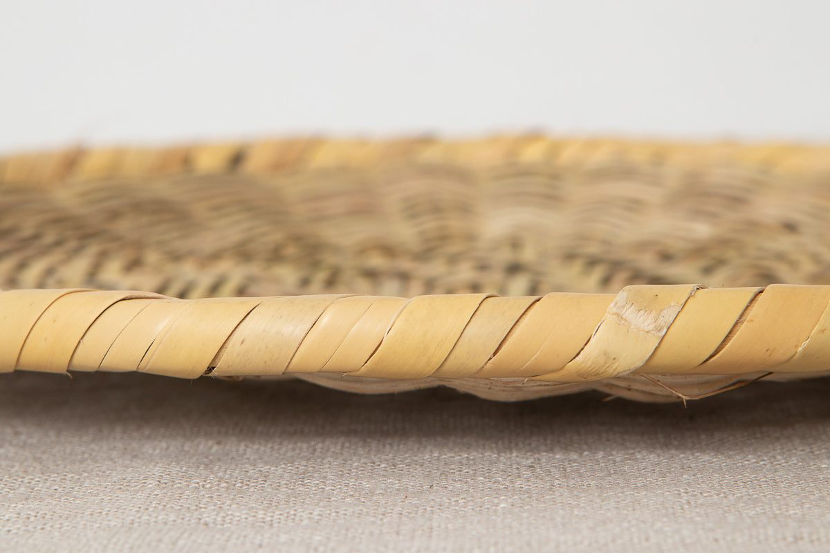 産地によっては、編みの部分と縁巻きで2種類の竹を使い分ける地域もありますが、こちらはとにかく根曲竹で統一されています。 -