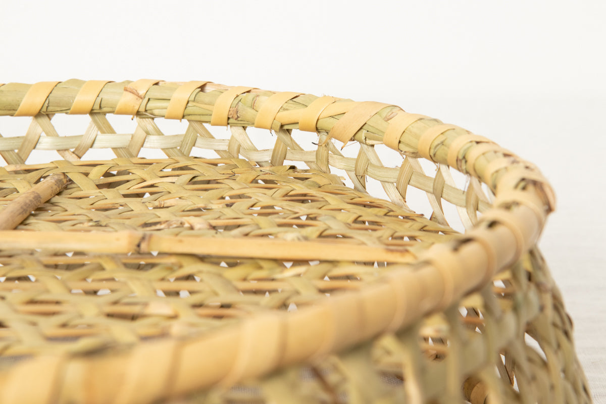 こちらは根曲竹で作られた、少し縁の立ったかご型の茶盆です。
