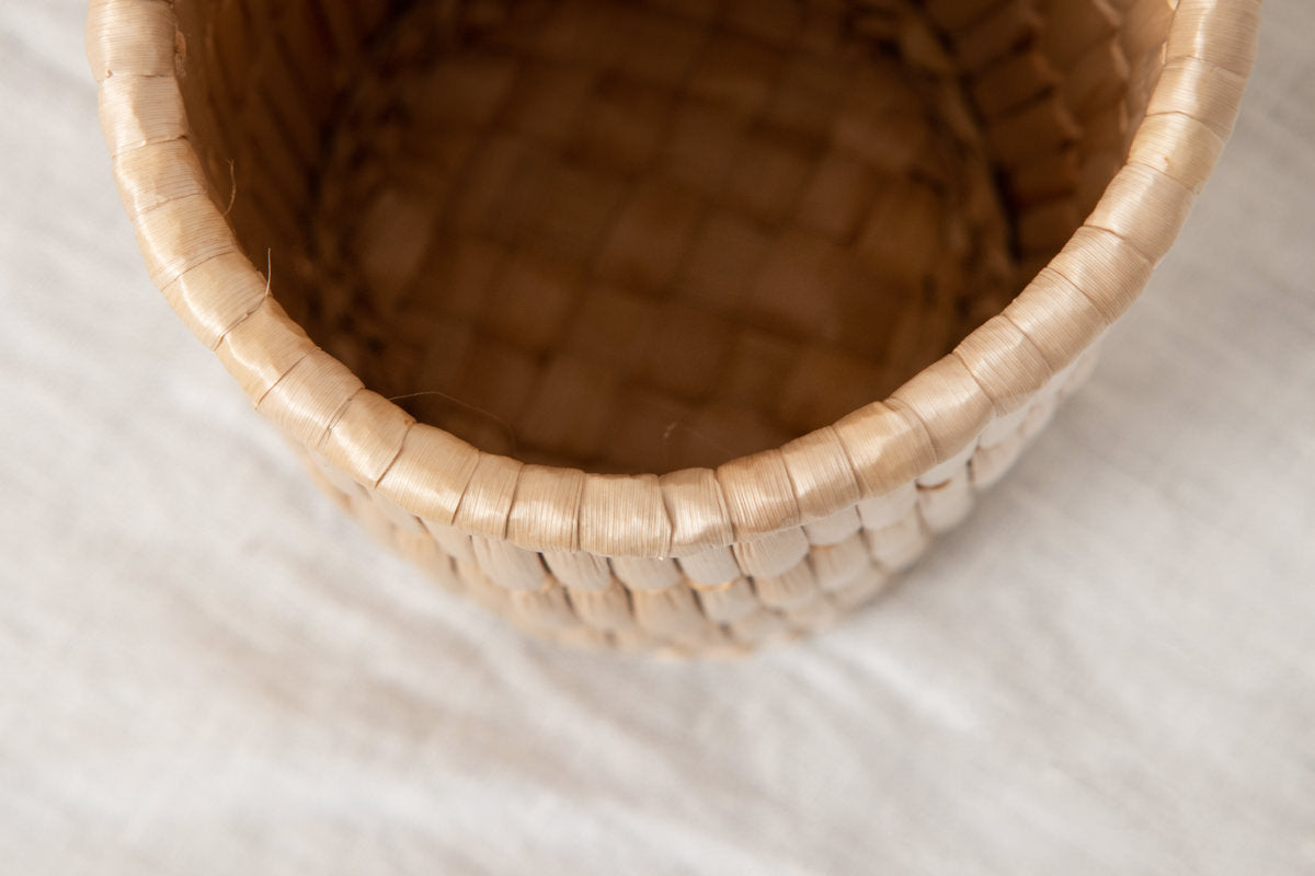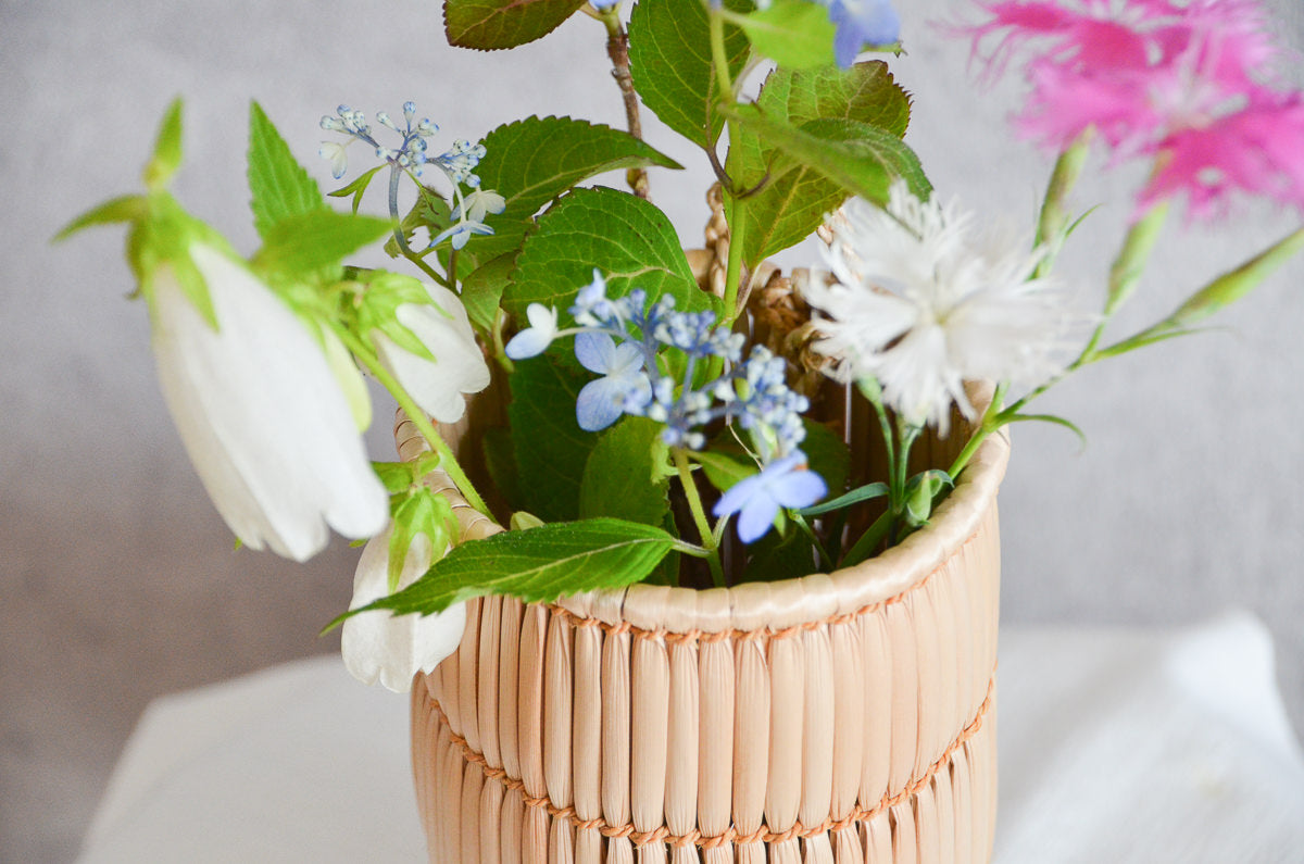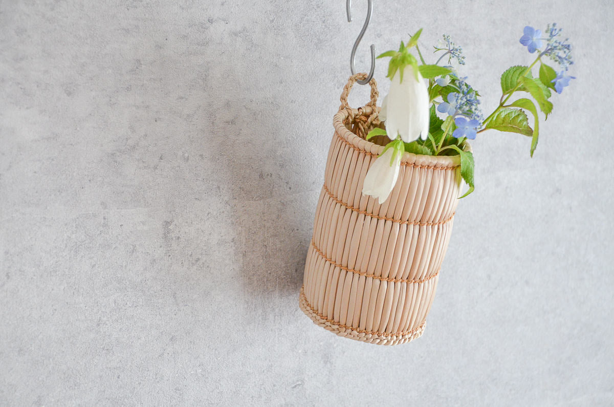 こちらのページでは、がま細工の中では小さめのかご、花筒(はなづつ)をご紹介します。