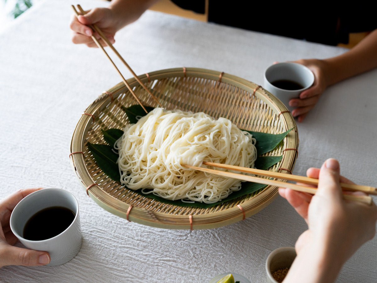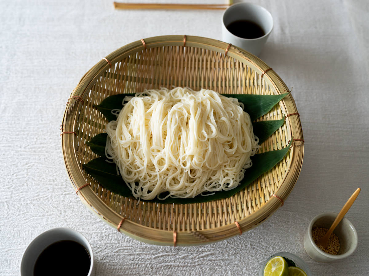また、おそば屋さんでは、ゆでたそばを釜からあげて水でしめるための「そばあげざる」も、昔から多くつかわれてきました。