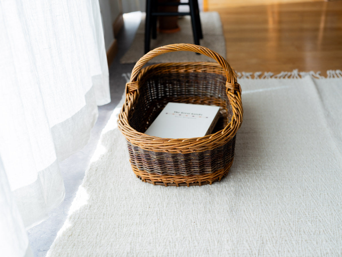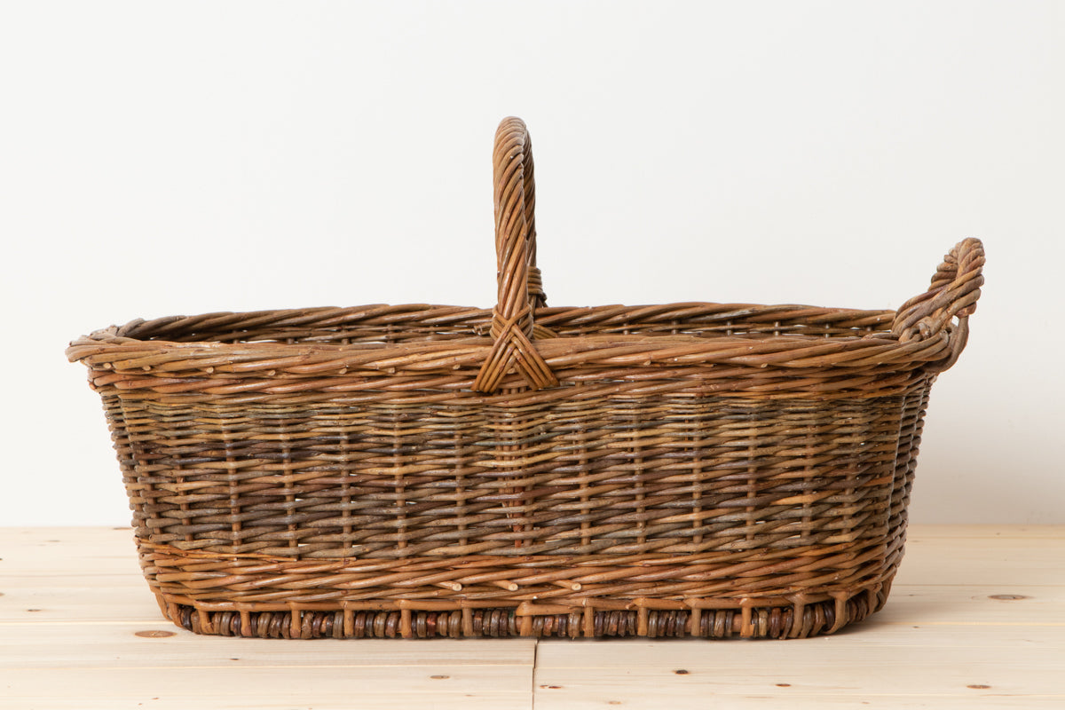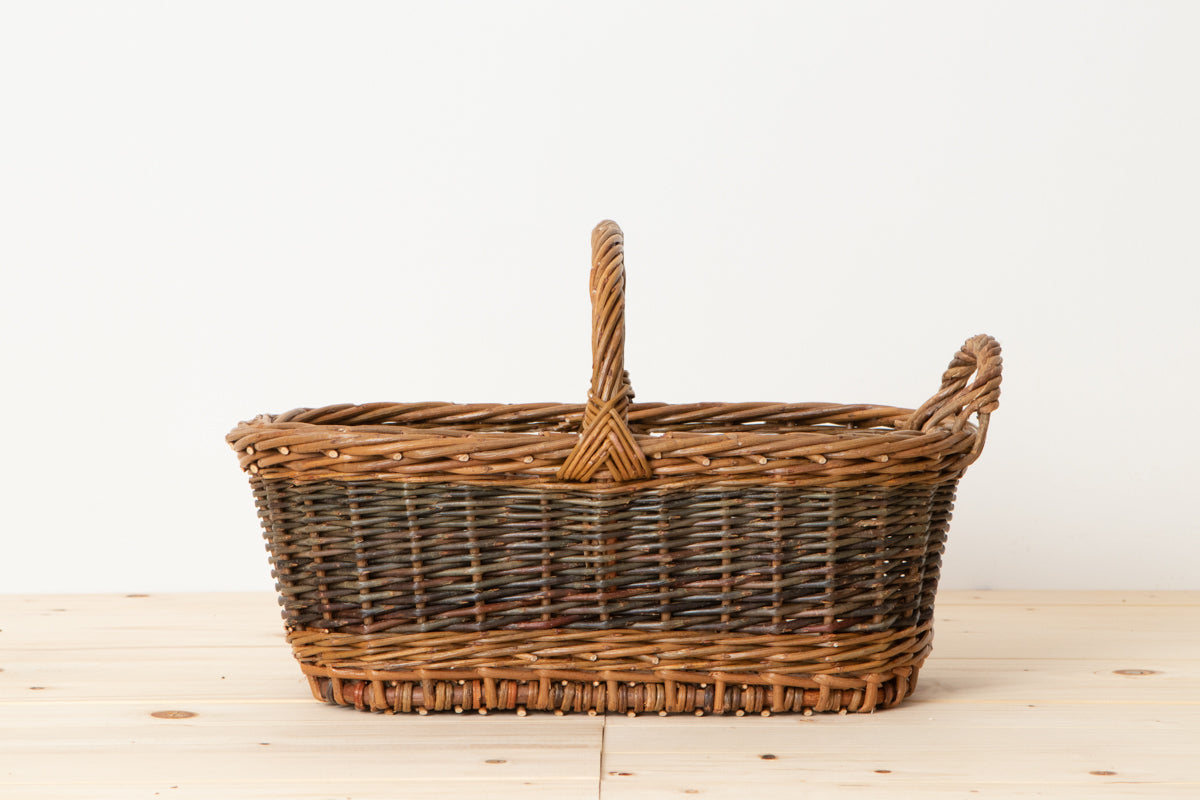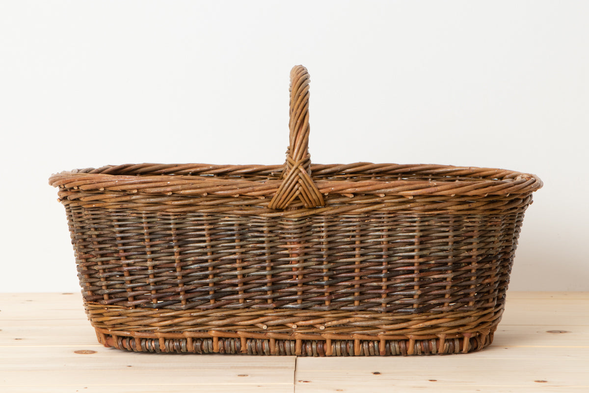 こちらはやなぎの枝を編んで作られた、持ち手付きのバスケットです。