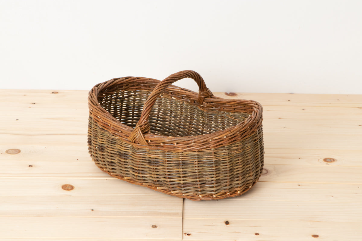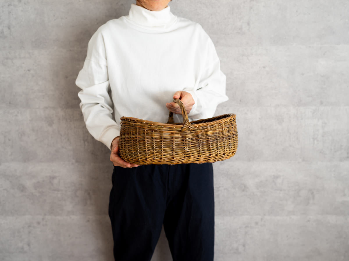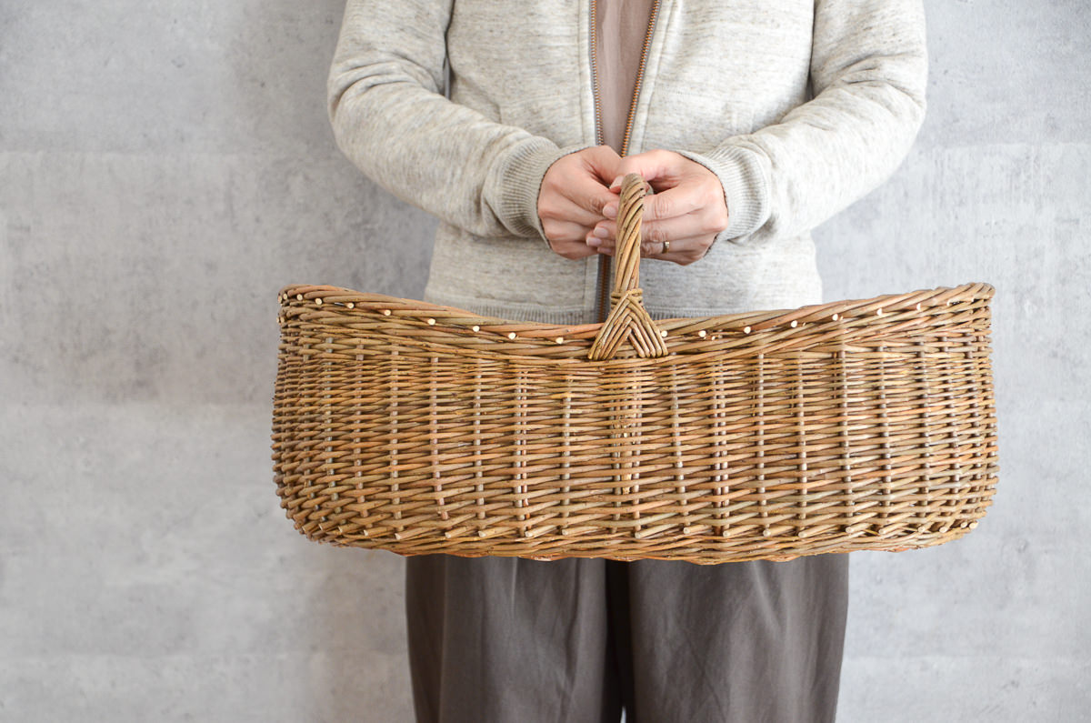 こちらはやなぎの枝を編んで作られた、持ち手付きのバスケットです。