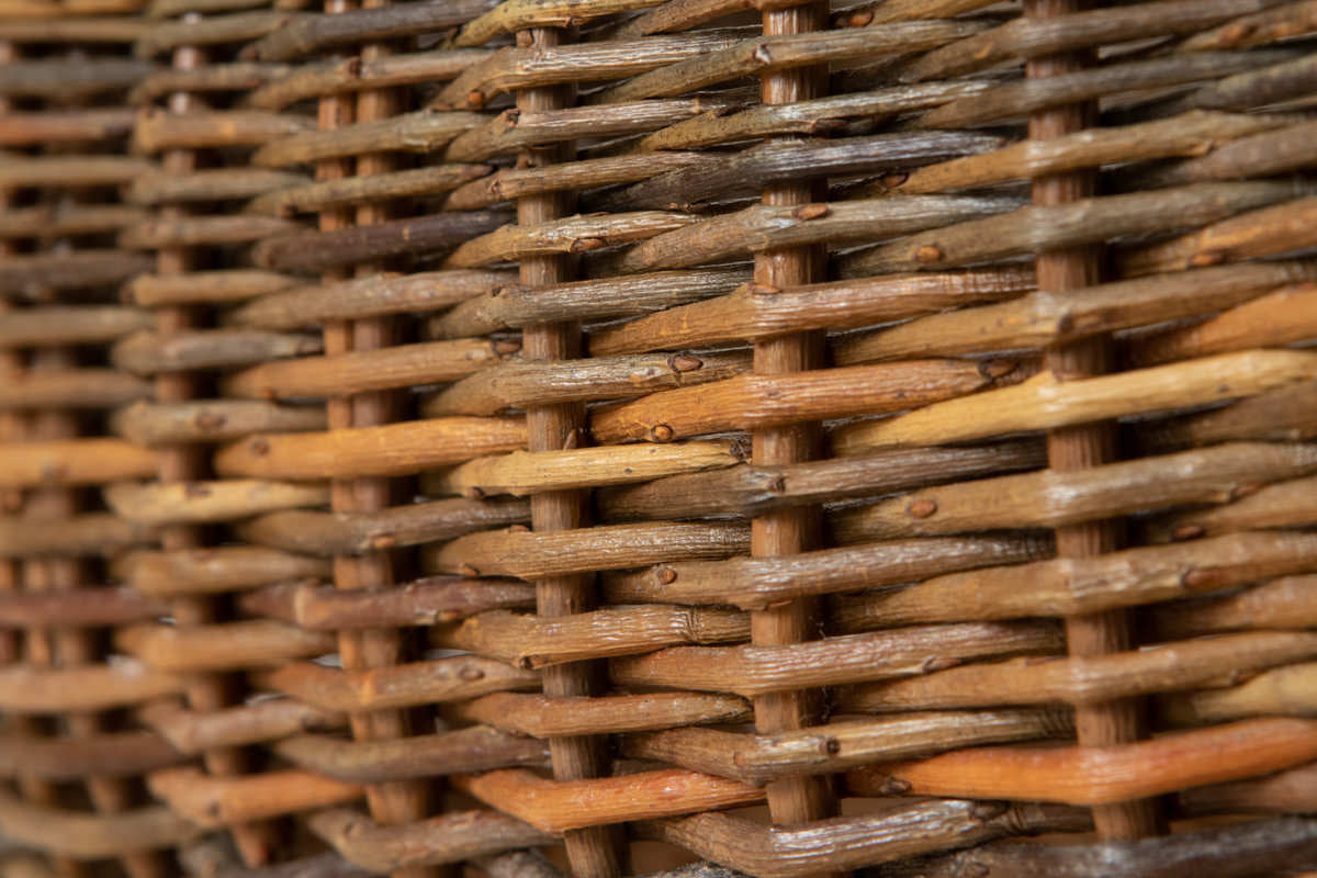また、枝の皮をむいたり、染めたり、半分に割ってつかうことで、素材としての幅が増え、いろいろなかたちで加工することができるのも、やなぎ細工の特徴です。