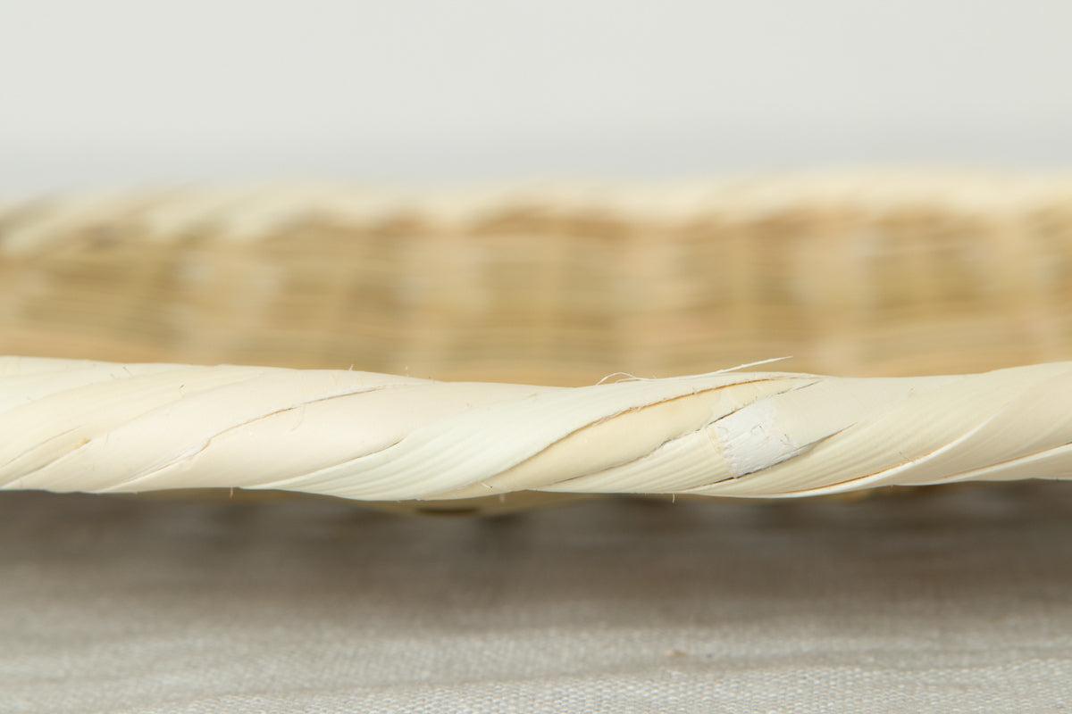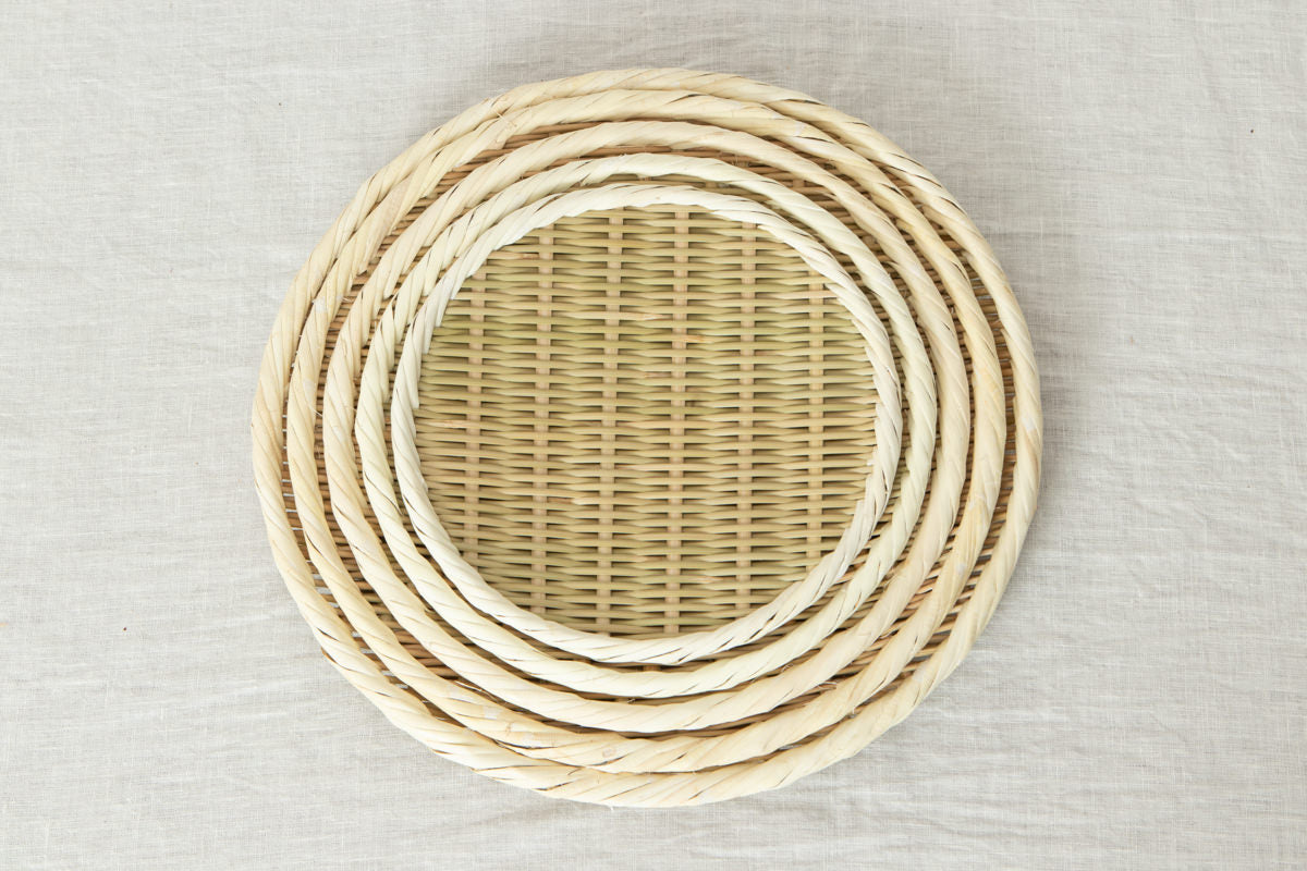 こちらの盆ざるは縁の芯材に番線を使っているため、サイズの揺れがほとんどありません。