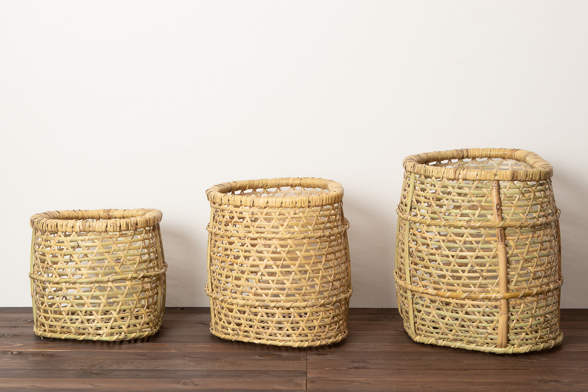 その中でもかごをよく作っていた部落にお住まいの職人さんにお願いした背負いかご・腰かごです。