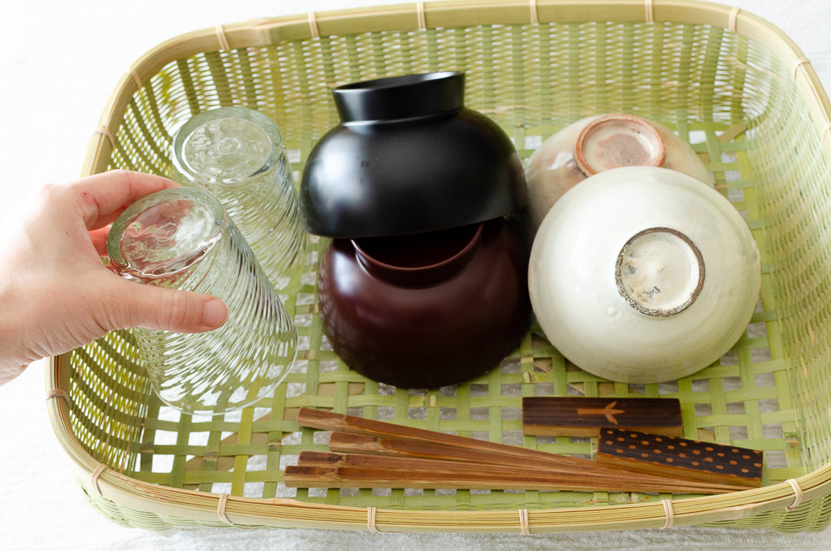 水で洗った食器をかごにのせる前に、食器の水を十分に切るようにしてください。
