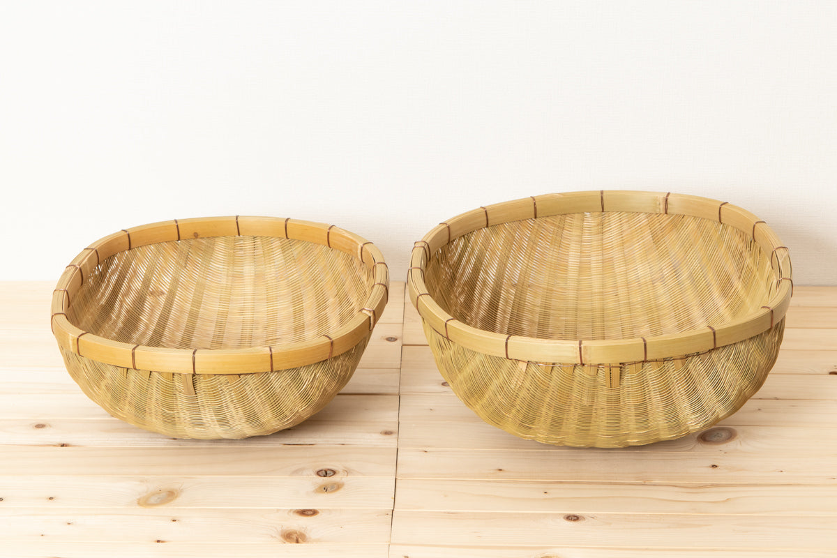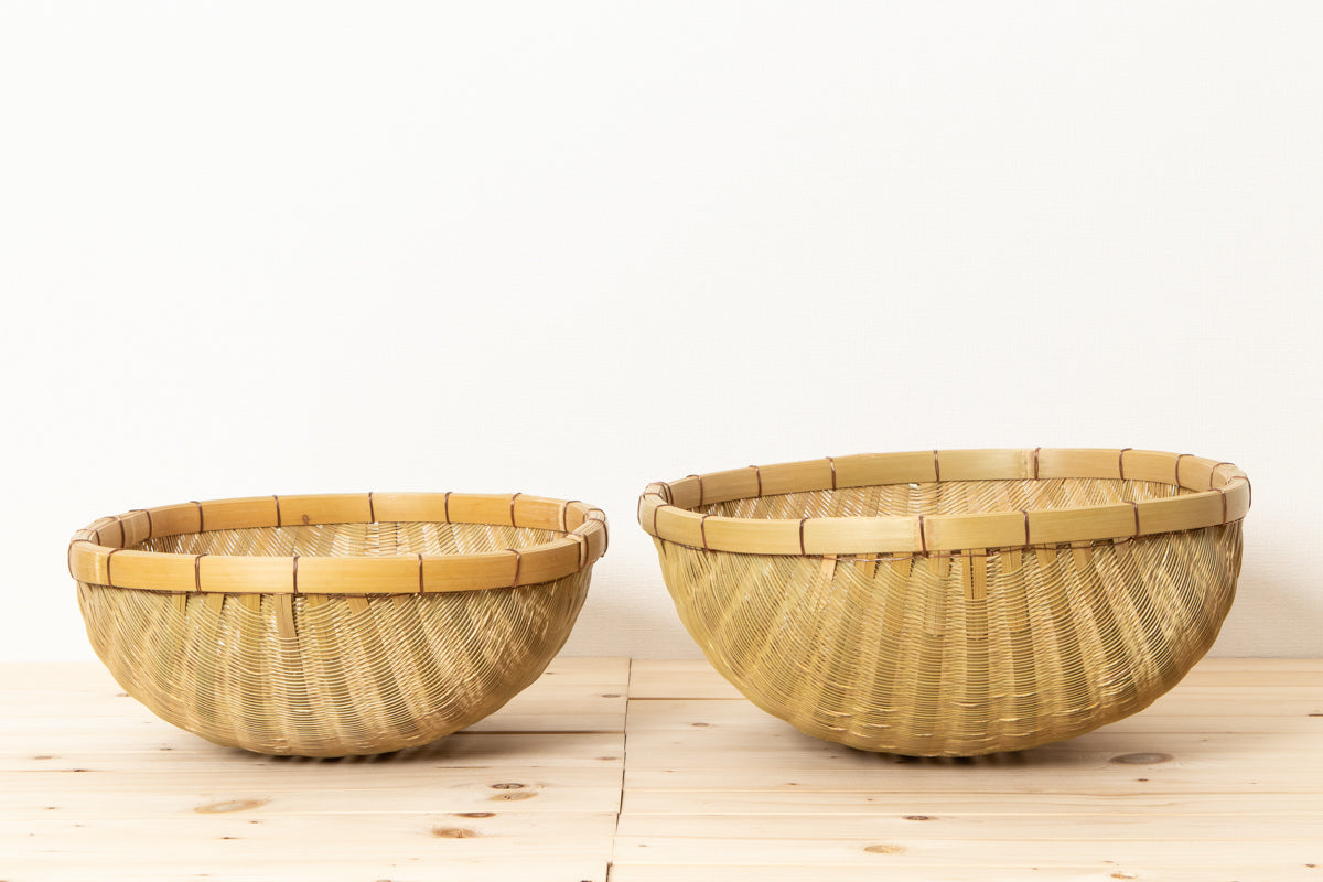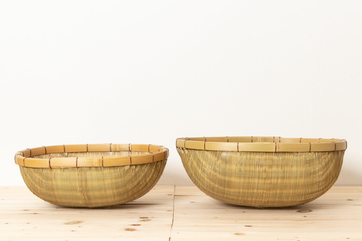 「そうき」と呼ばれる深くて、大きな水切りざる、特上仕上げの「小」と「大」の2サイズをご紹介します。